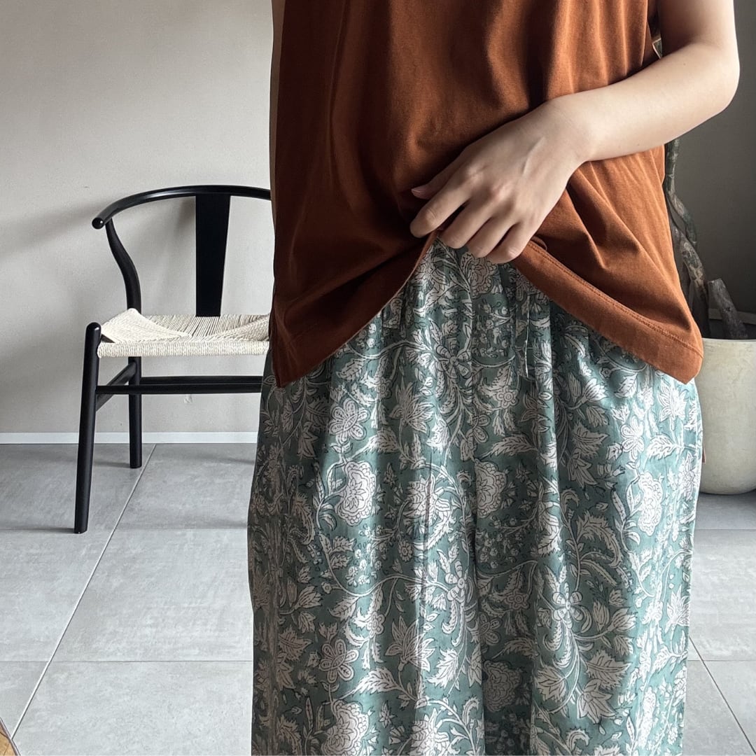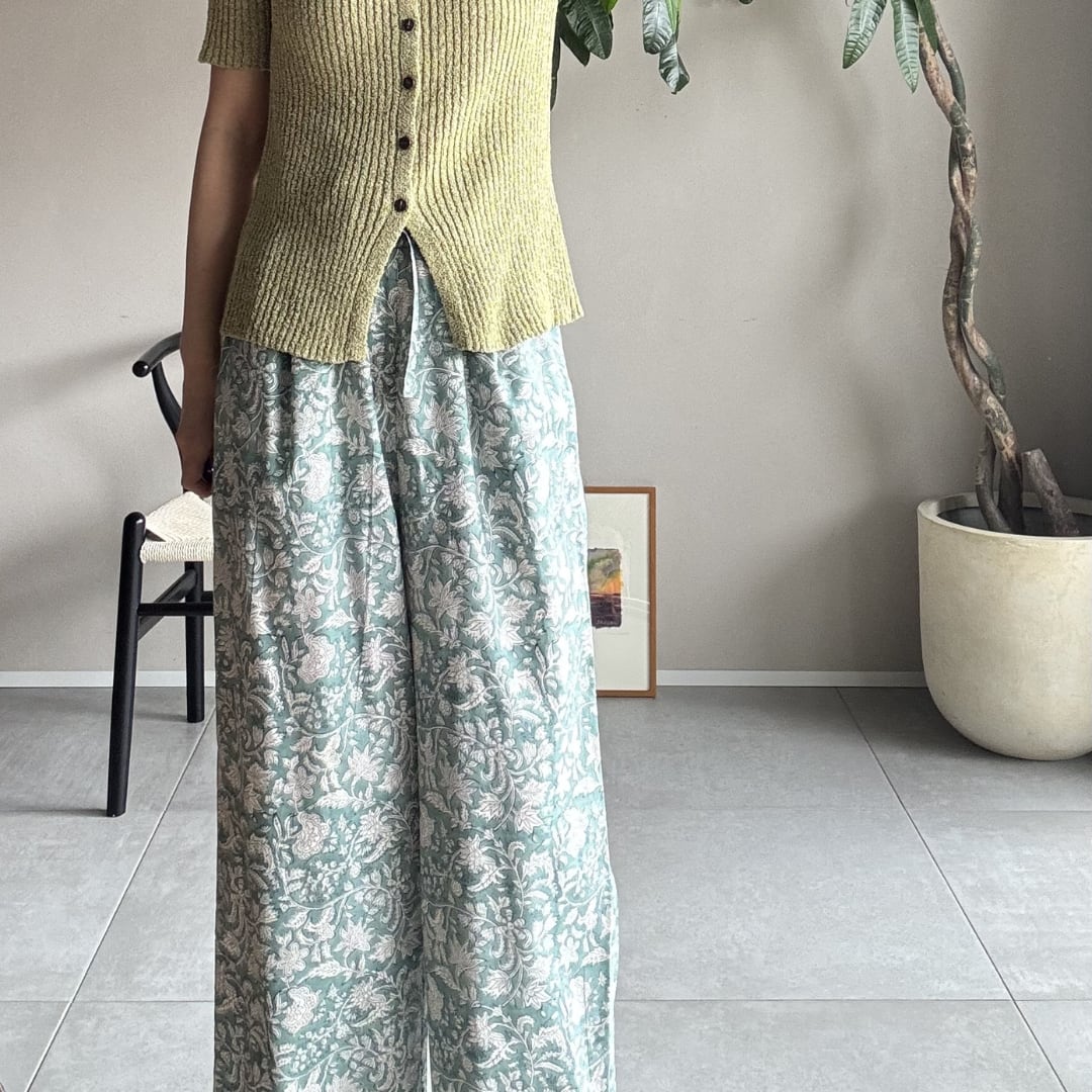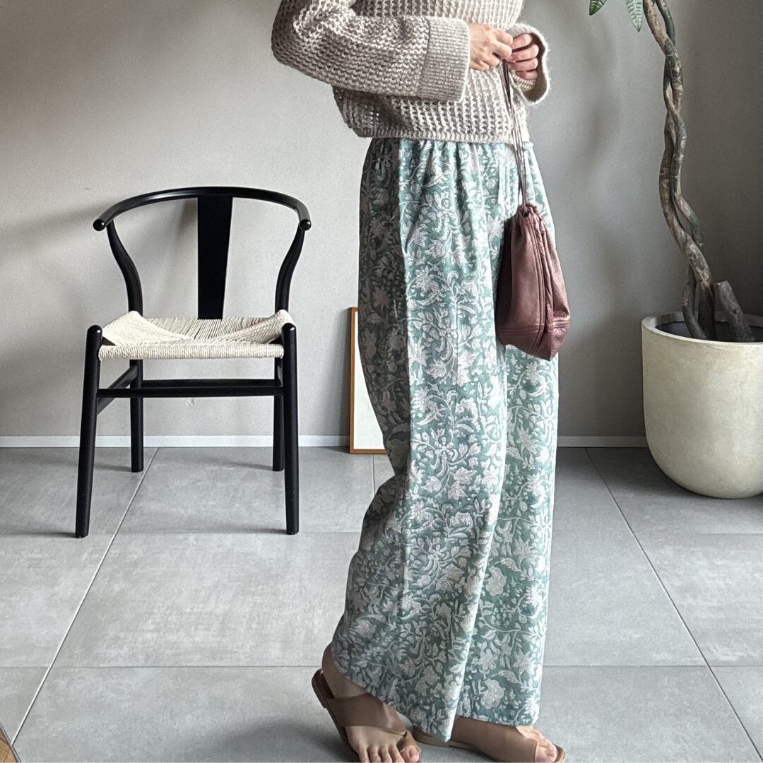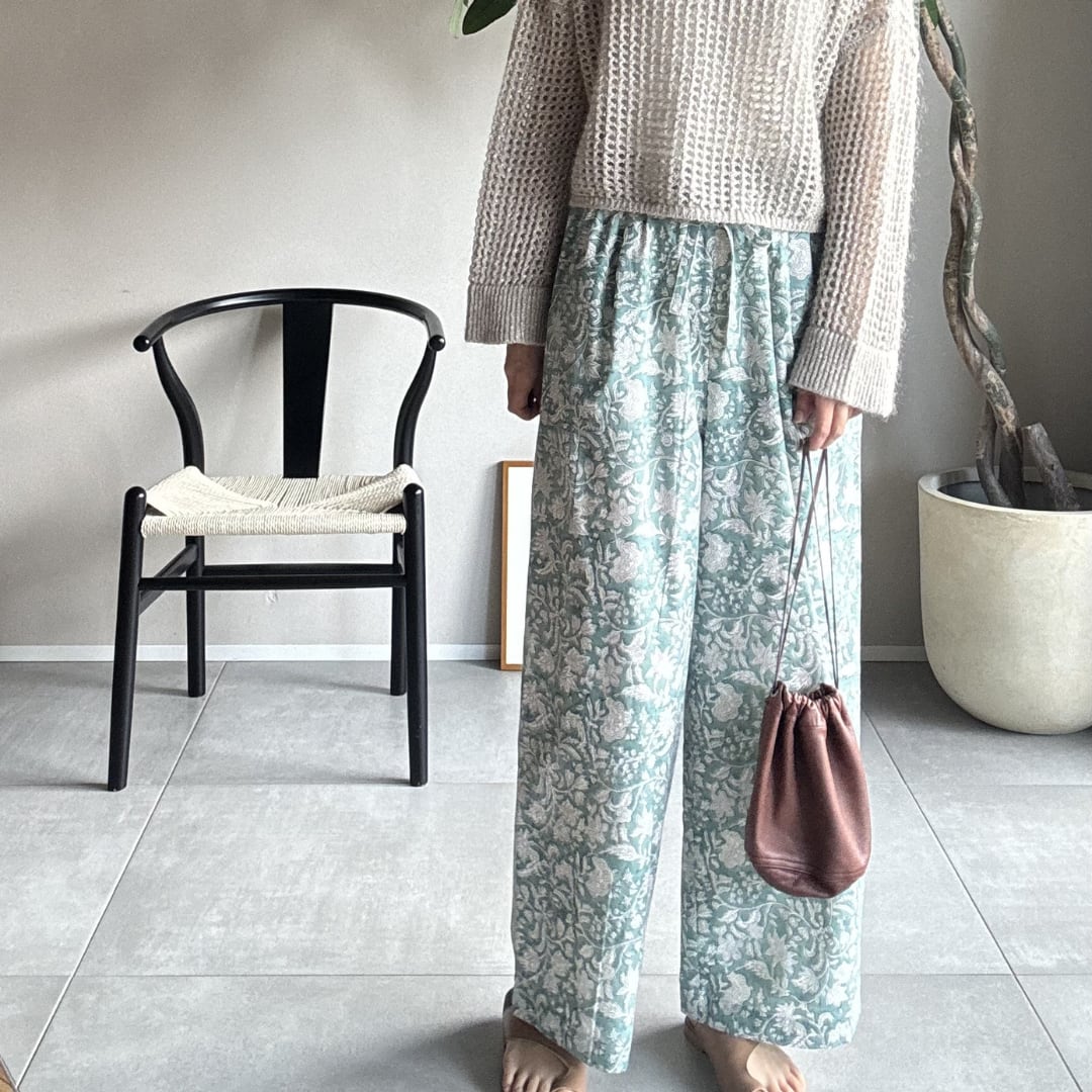 ¦ミントグリーン¦ブロックプリントパンツ