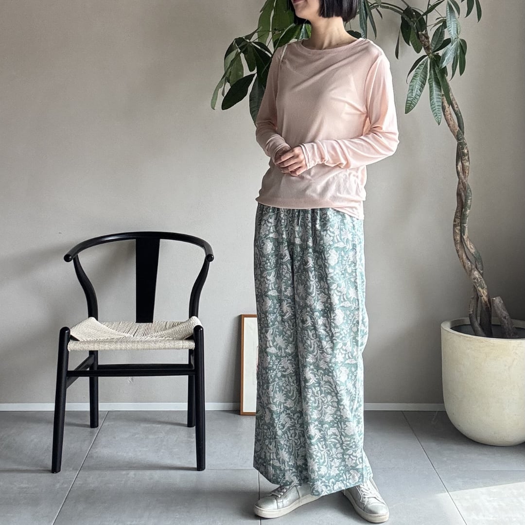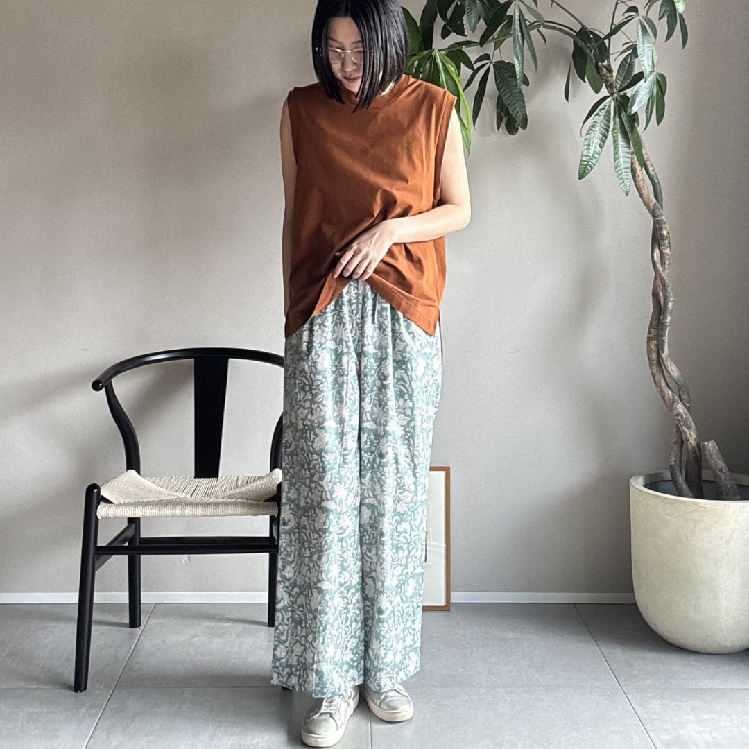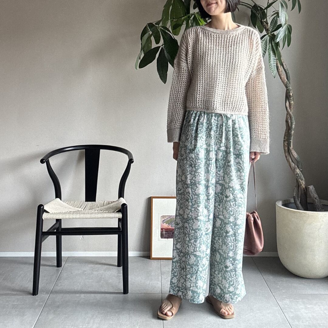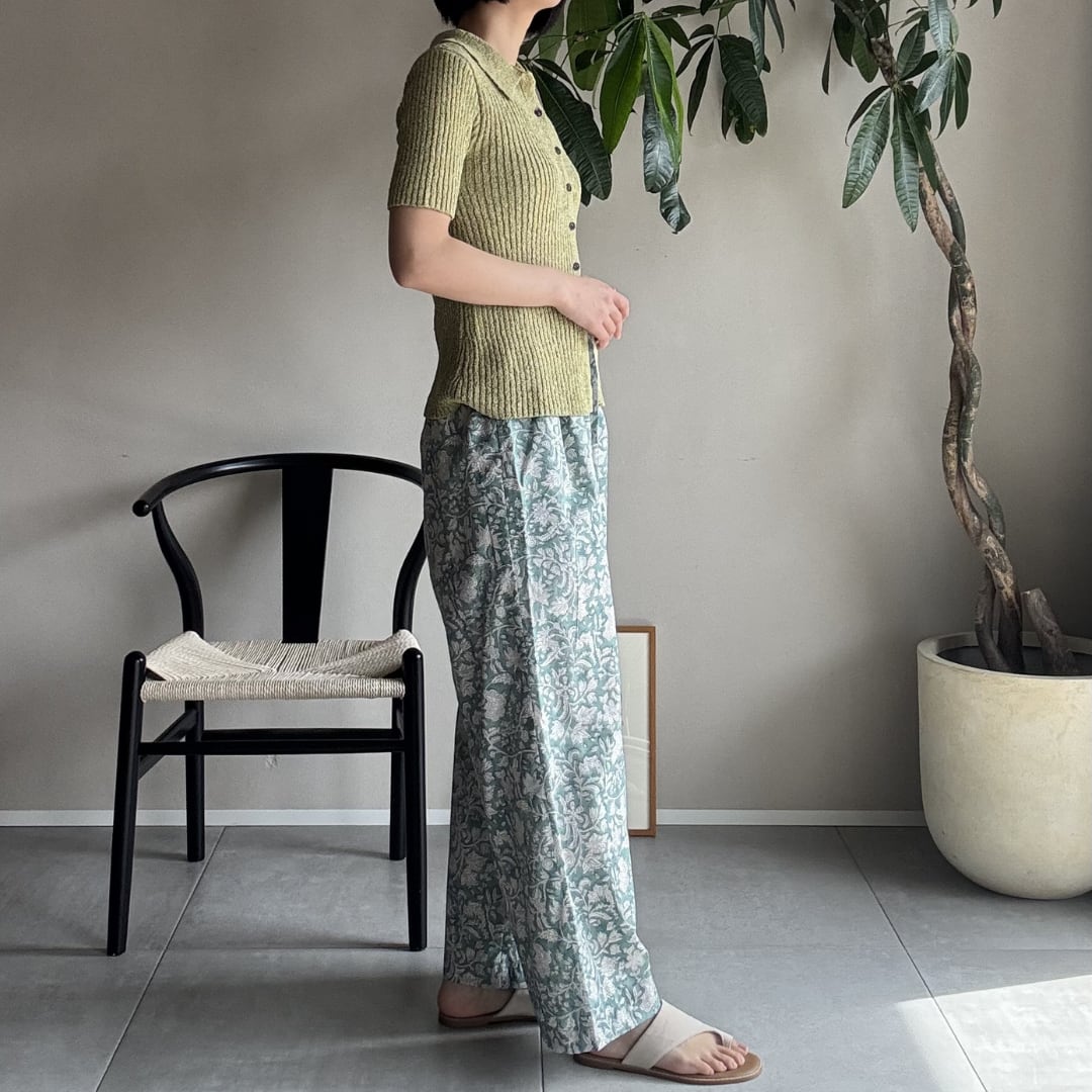 ¦ミントグリーン¦ブロックプリントパンツ