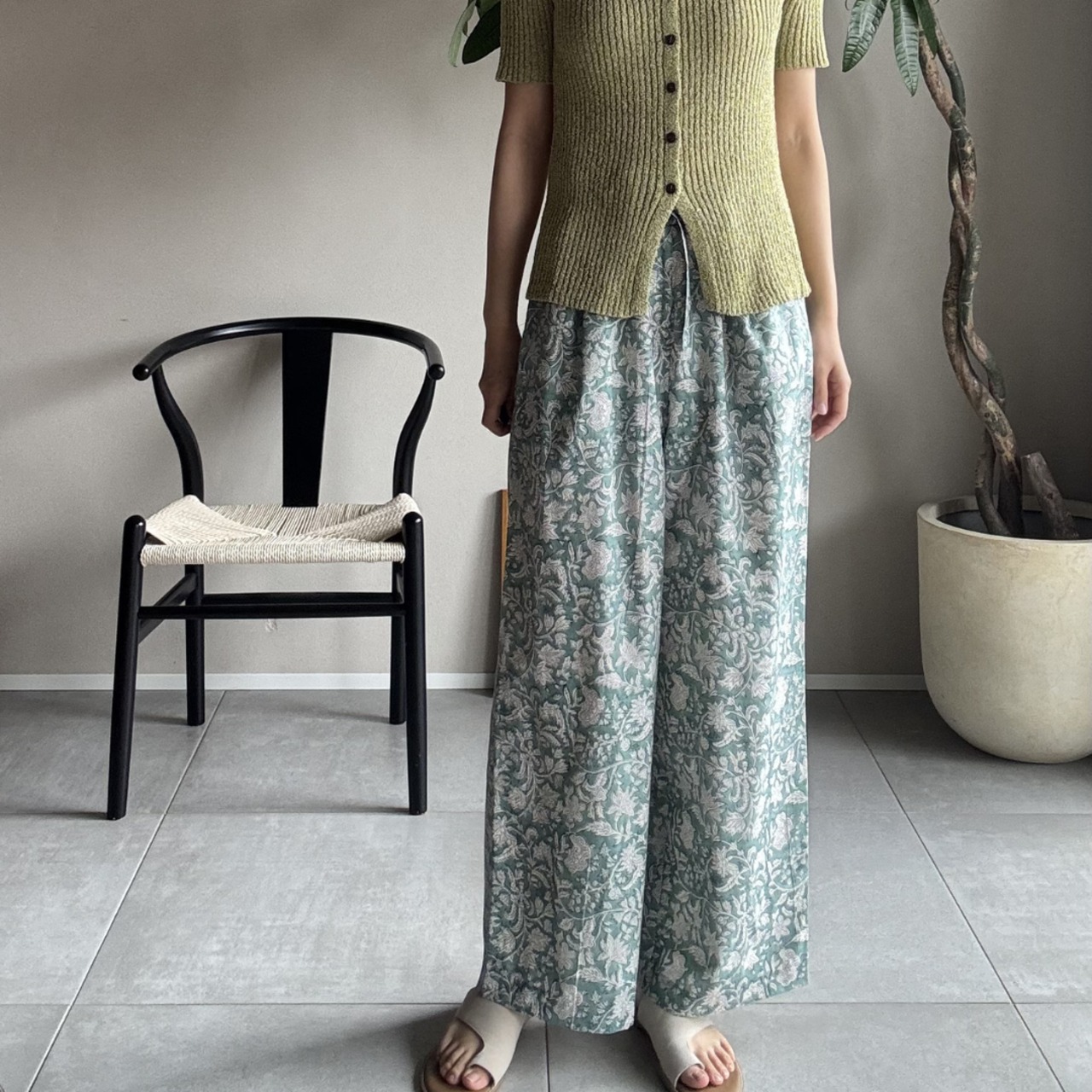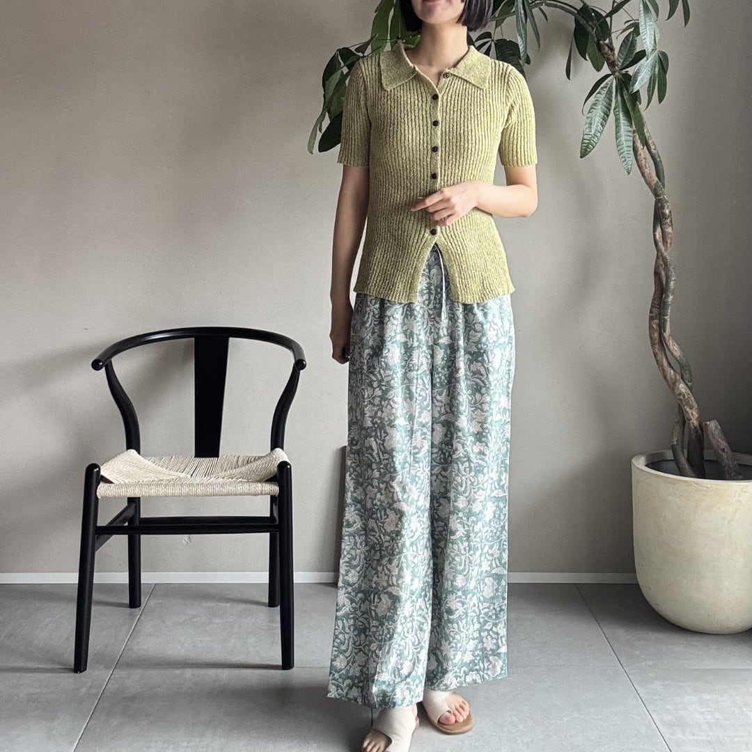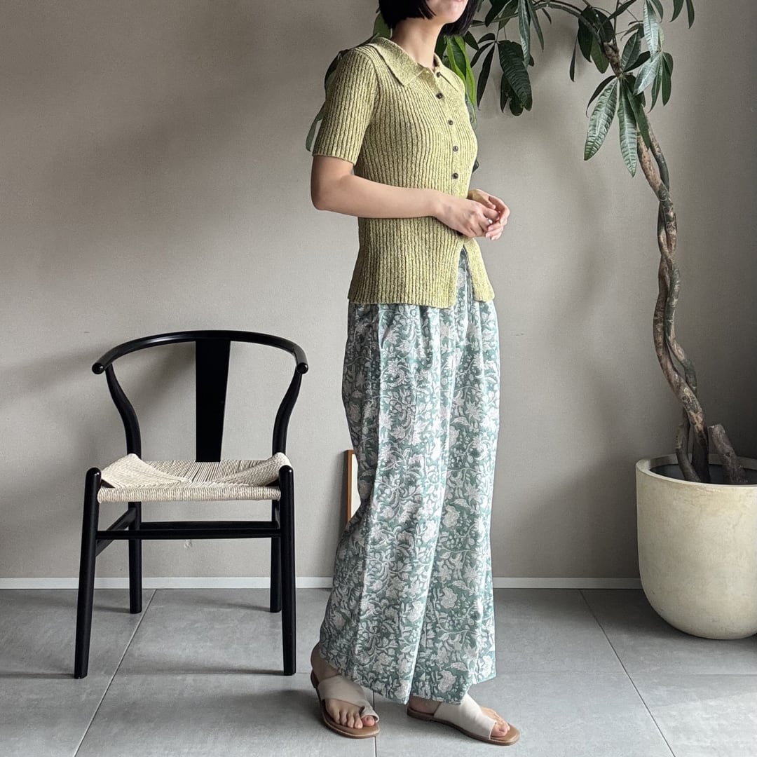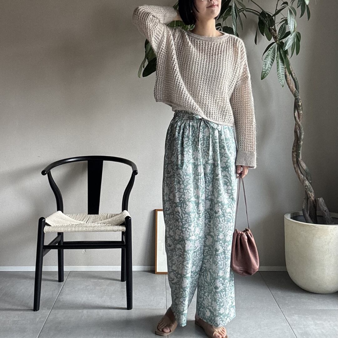 ¦ミントグリーン¦ブロックプリントパンツ