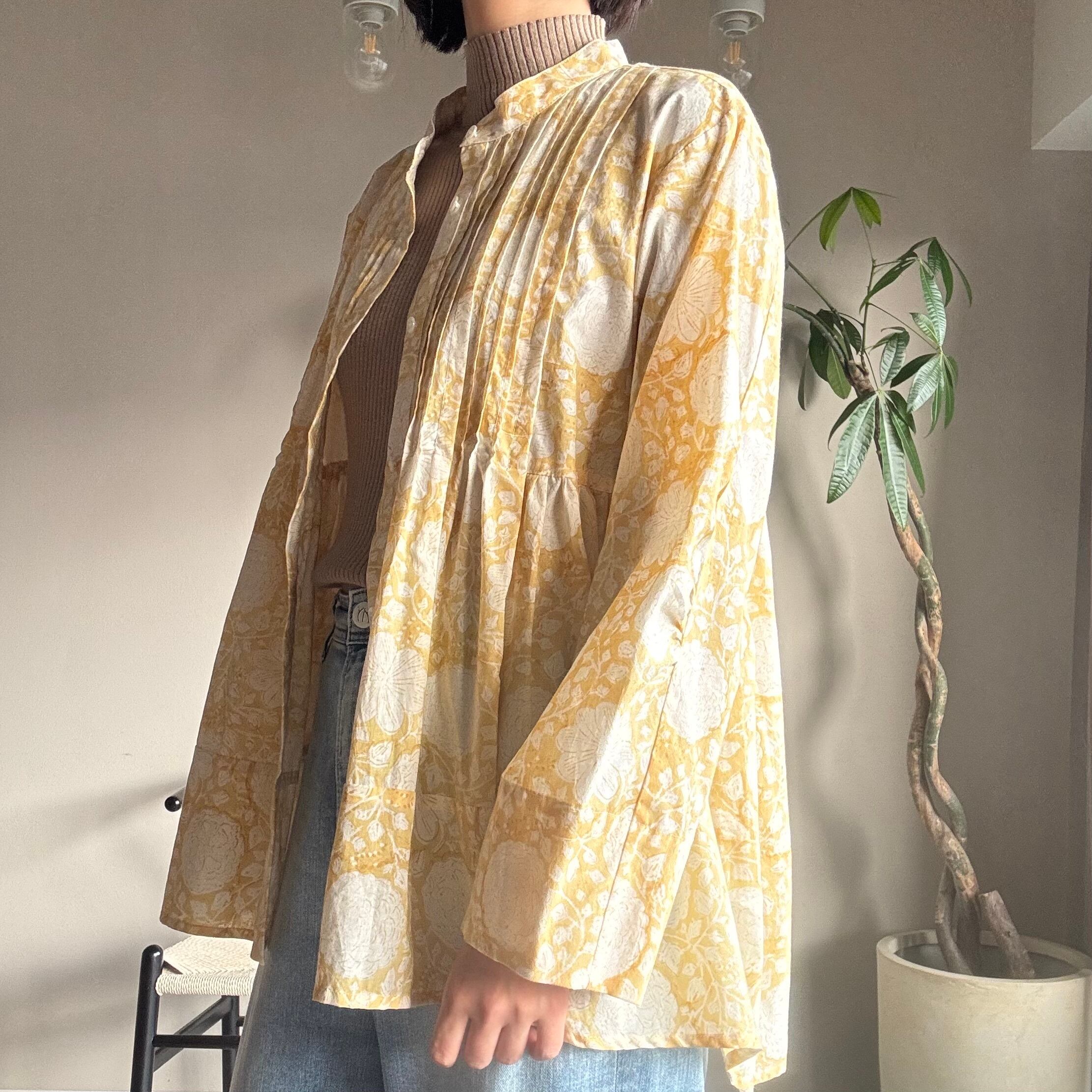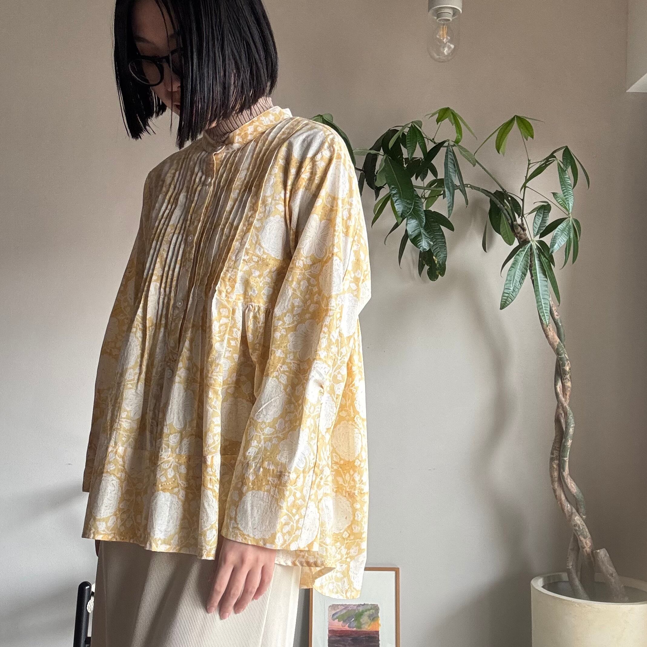 ¦スプリングガーデン¦ブロックプリントピンタックブラウス