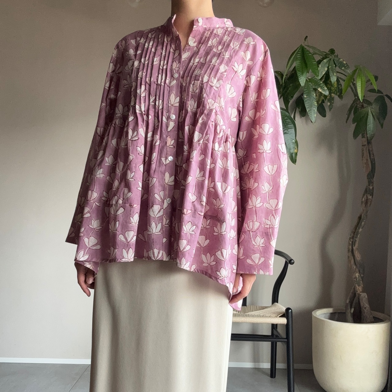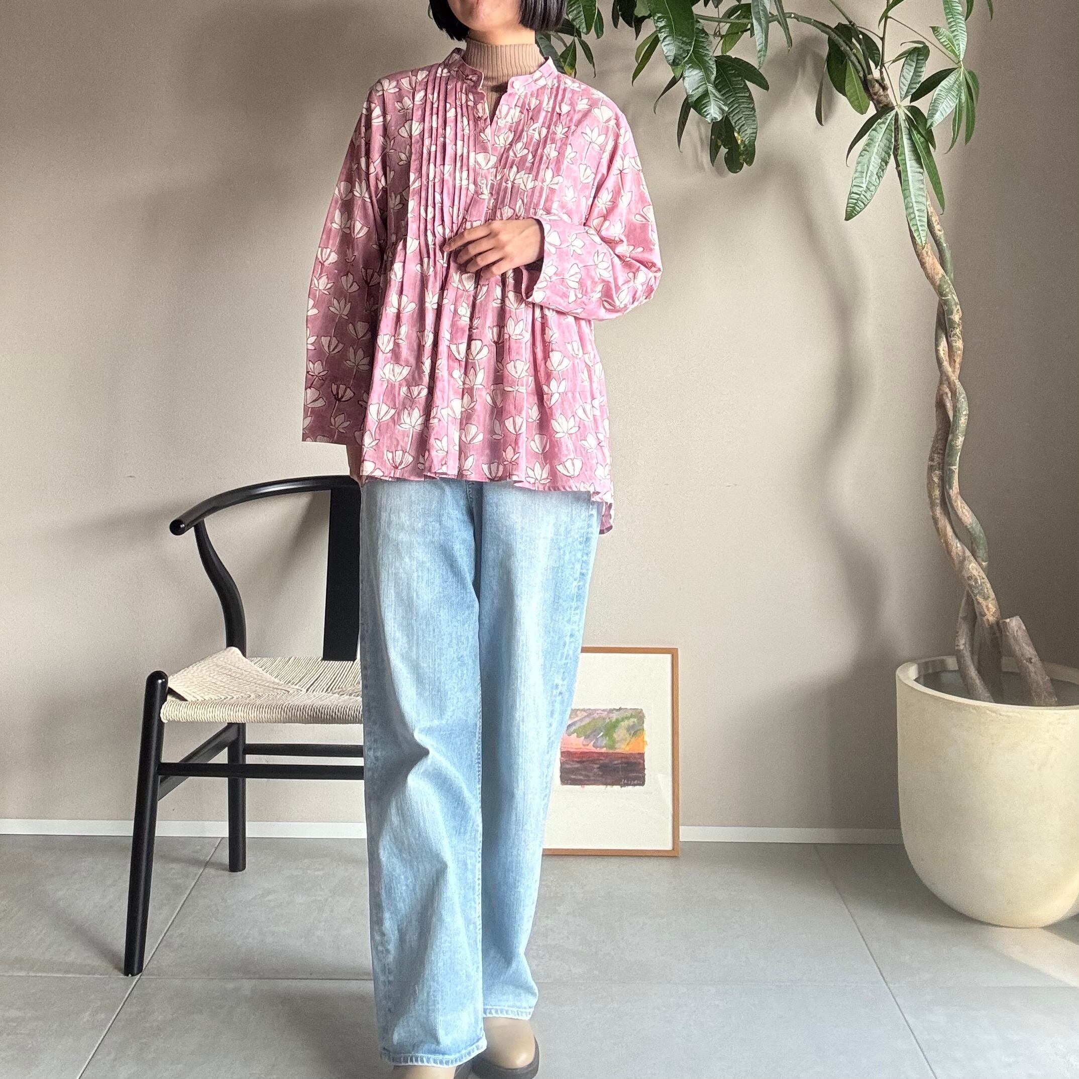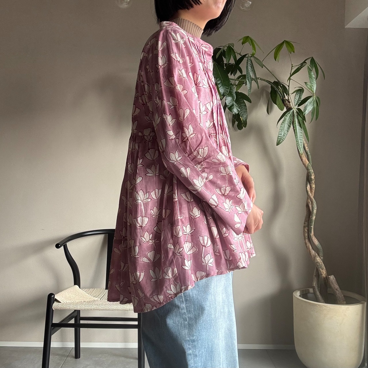 ¦ピンクブルーム¦ブロックプリントピンタックブラウス