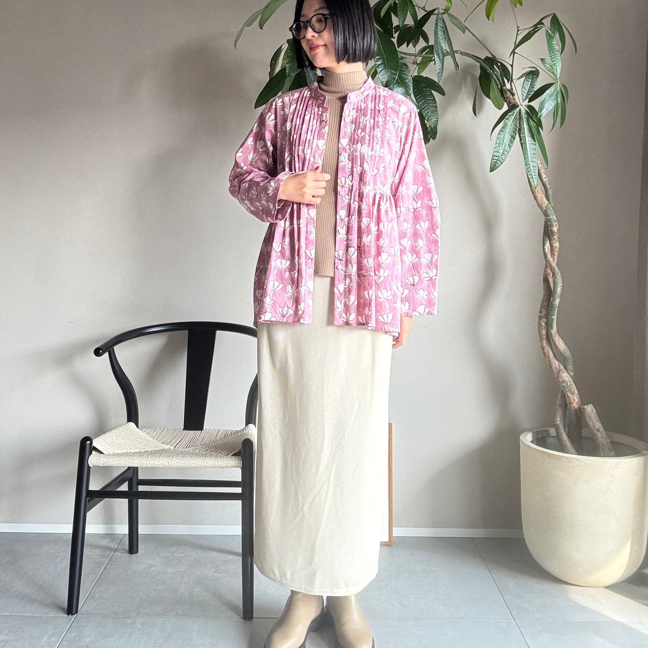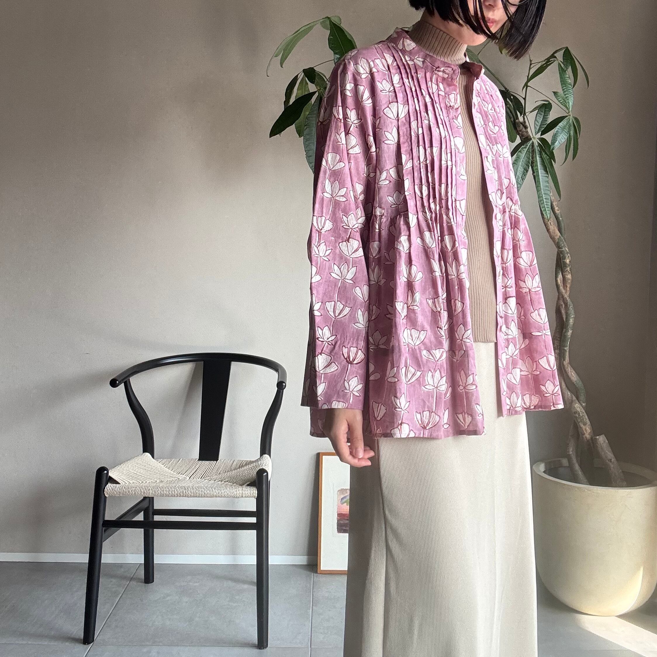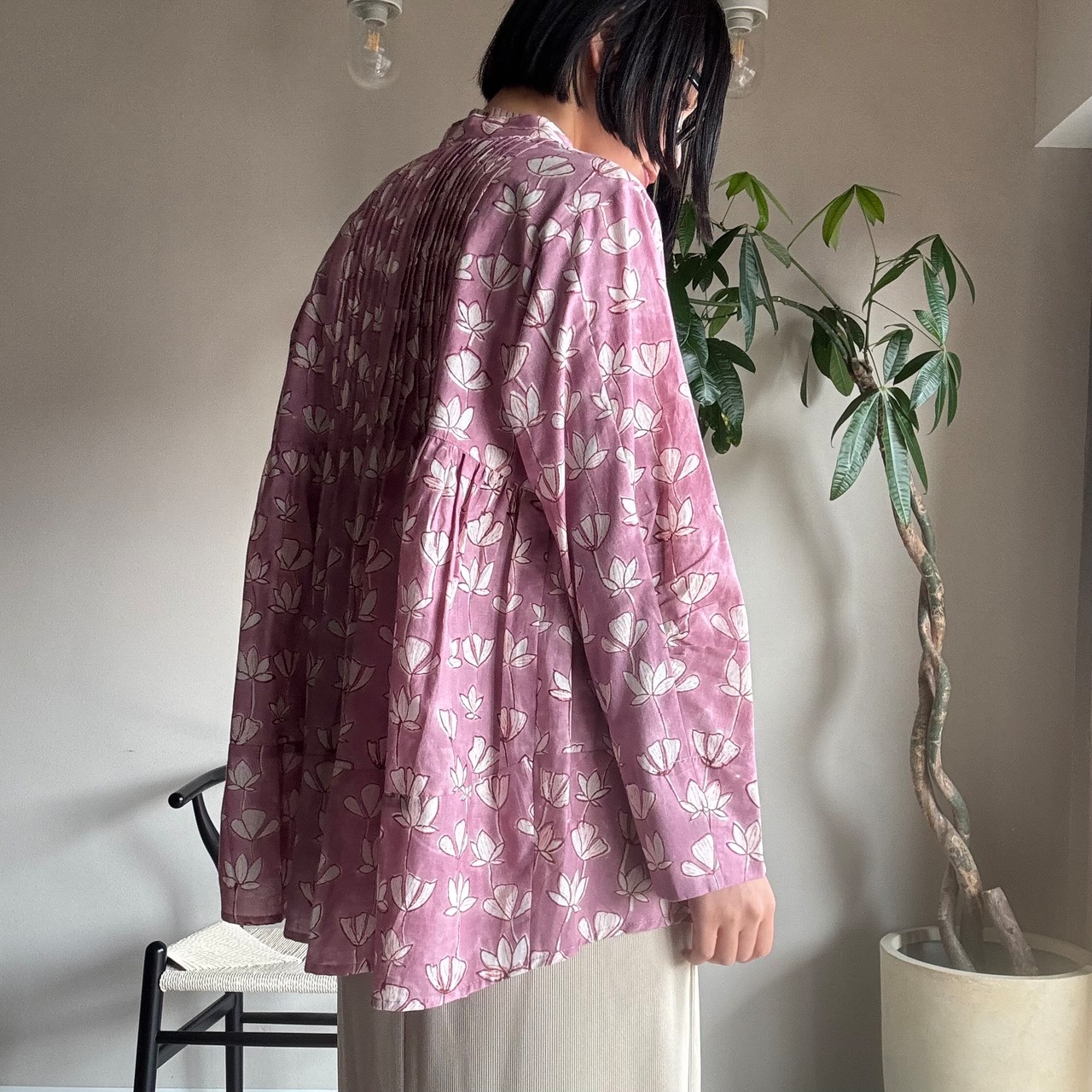¦ピンクブルーム¦ブロックプリントピンタックブラウス
