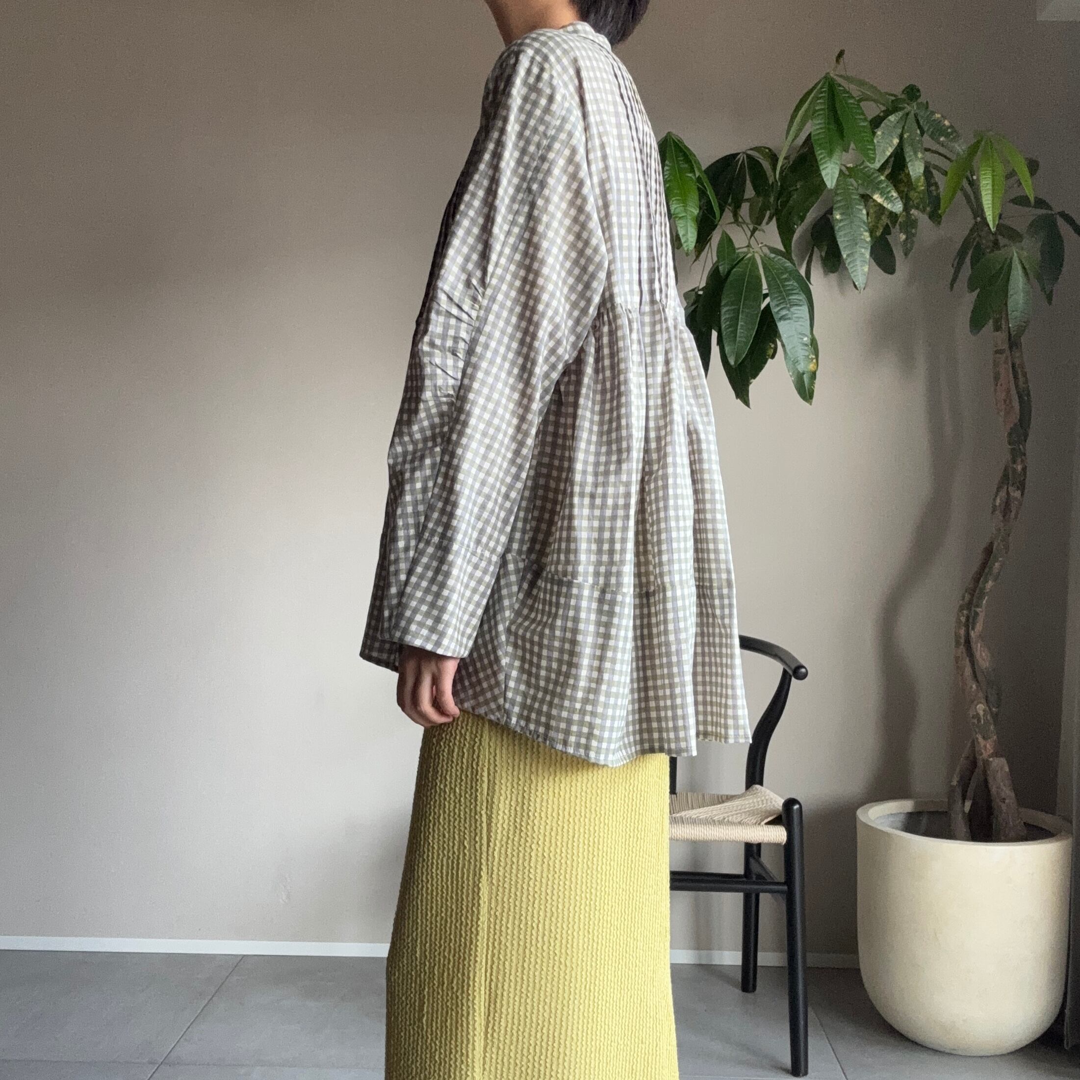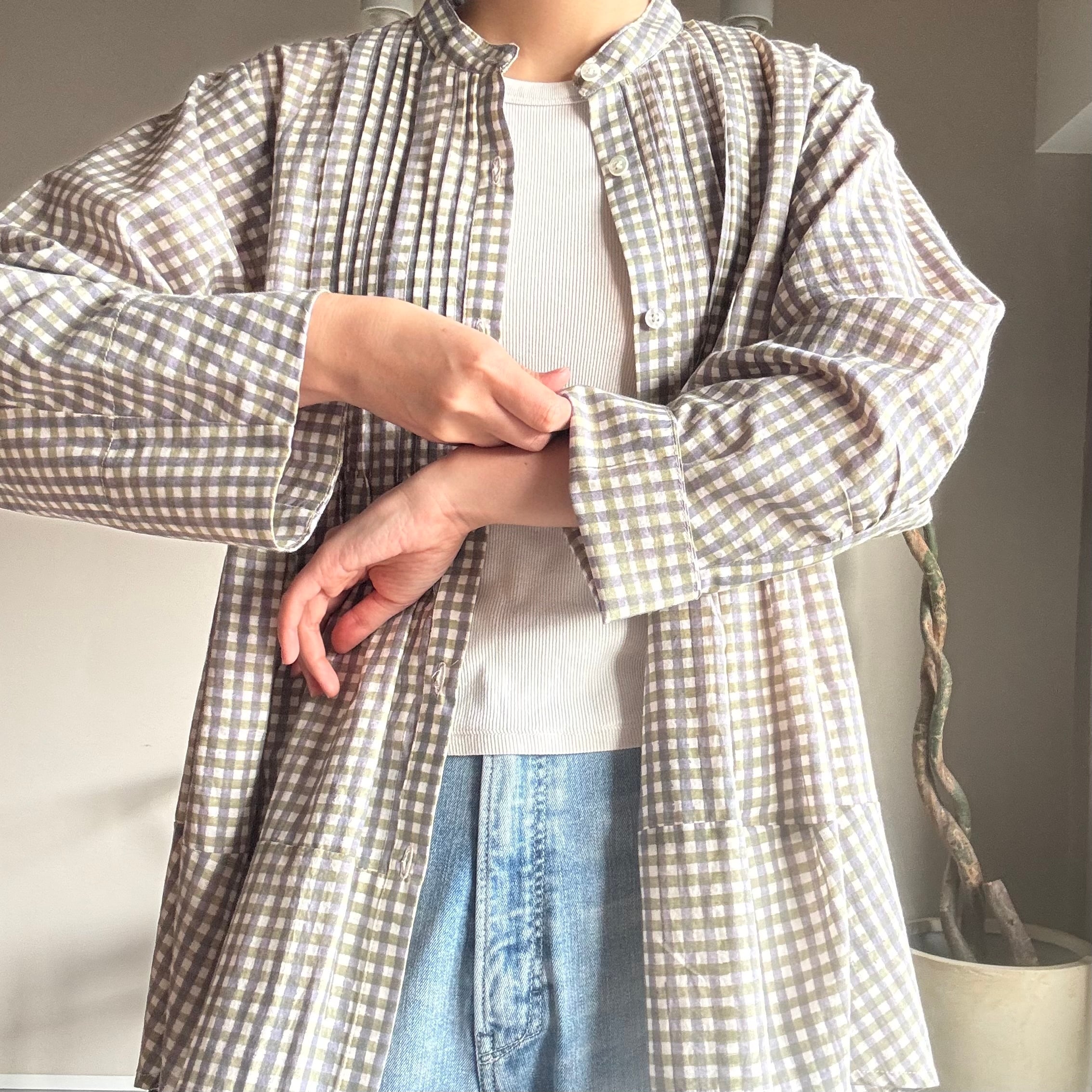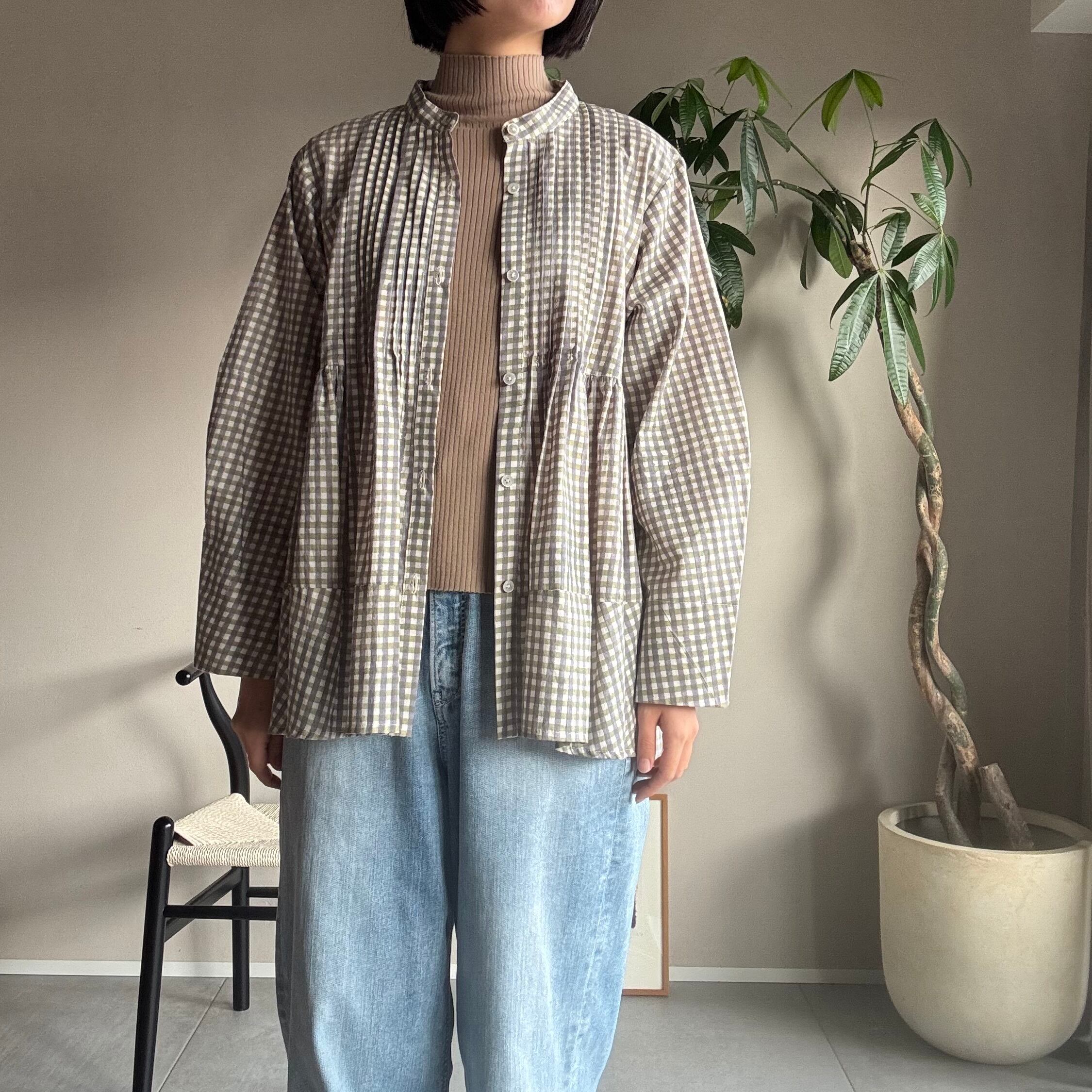 ¦バイオレットチェック¦ブロックプリントピンタックブラウス