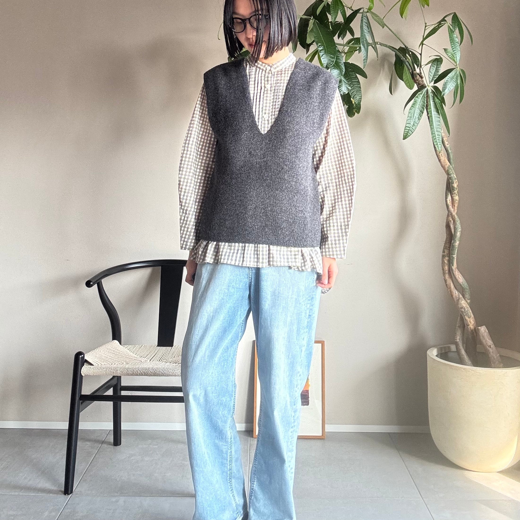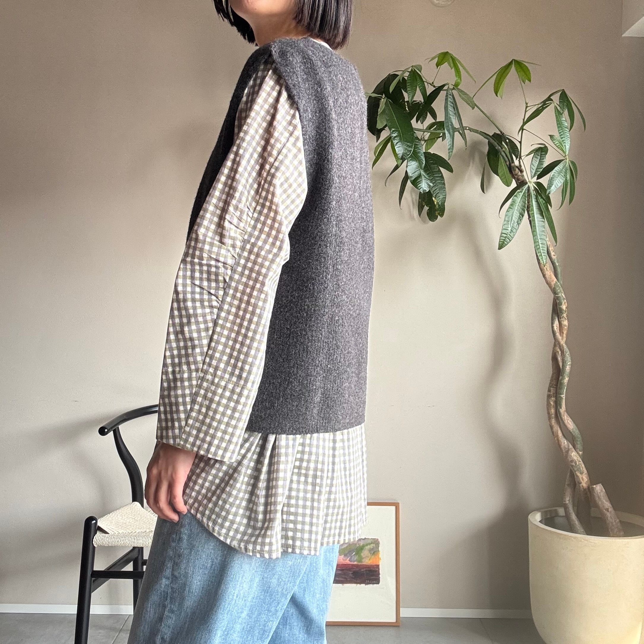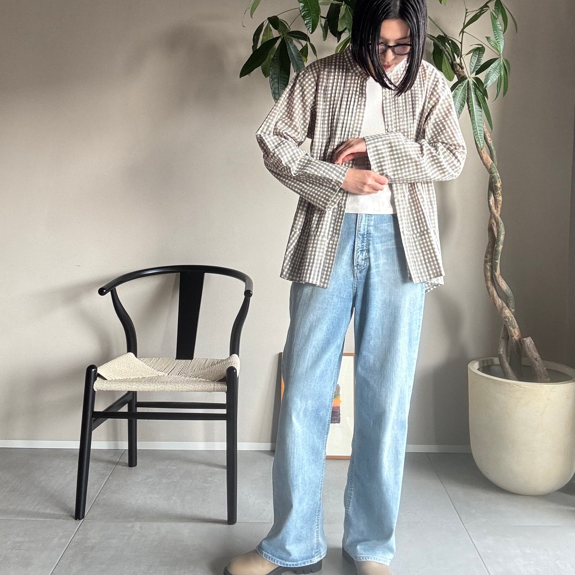 ¦バイオレットチェック¦ブロックプリントピンタックブラウス