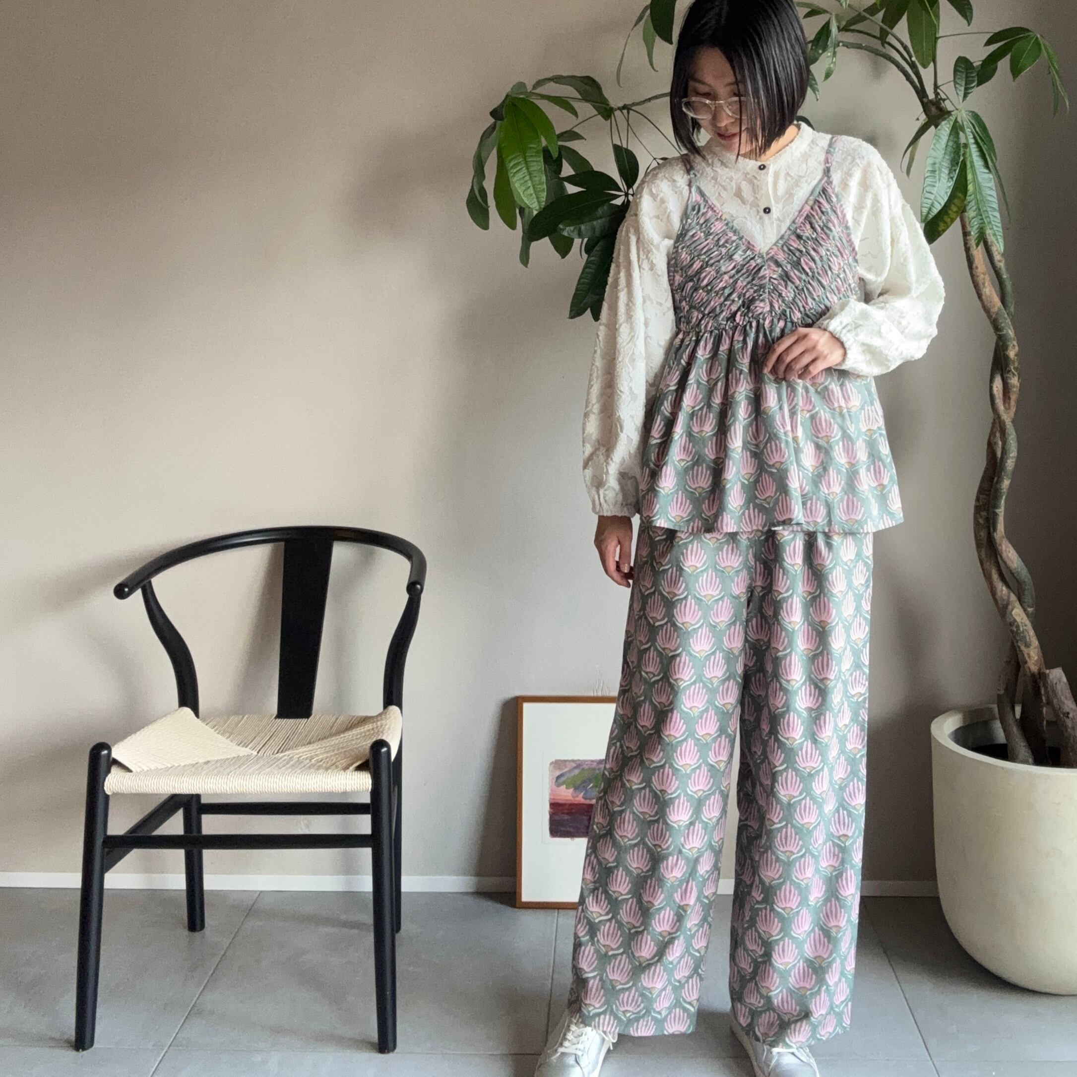 ・同柄のパンツと合わせてご購入のお客様は、出来る限り上下色合いの近い生地でお届けしますが、ハンドメイドのため多少色合いが異なる場合がございます。