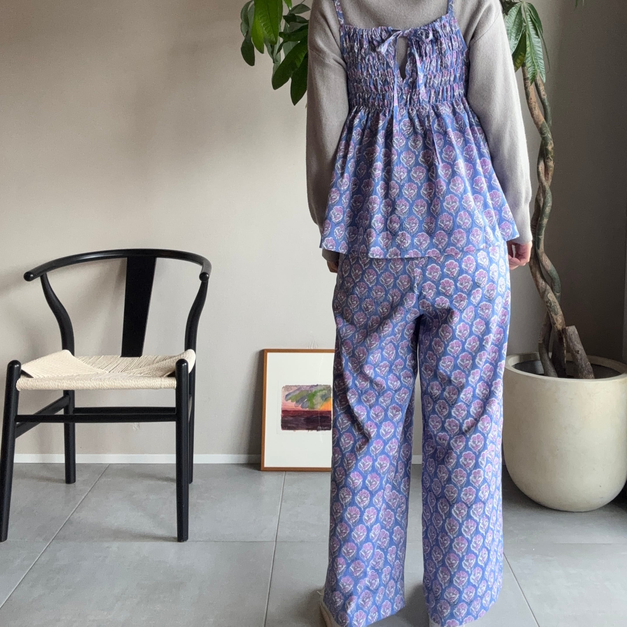 ・同柄のパンツと合わせてご購入のお客様は、出来る限り上下色合いの近い生地でお届けしますが、ハンドメイドのため多少色合いが異なる場合がございます。