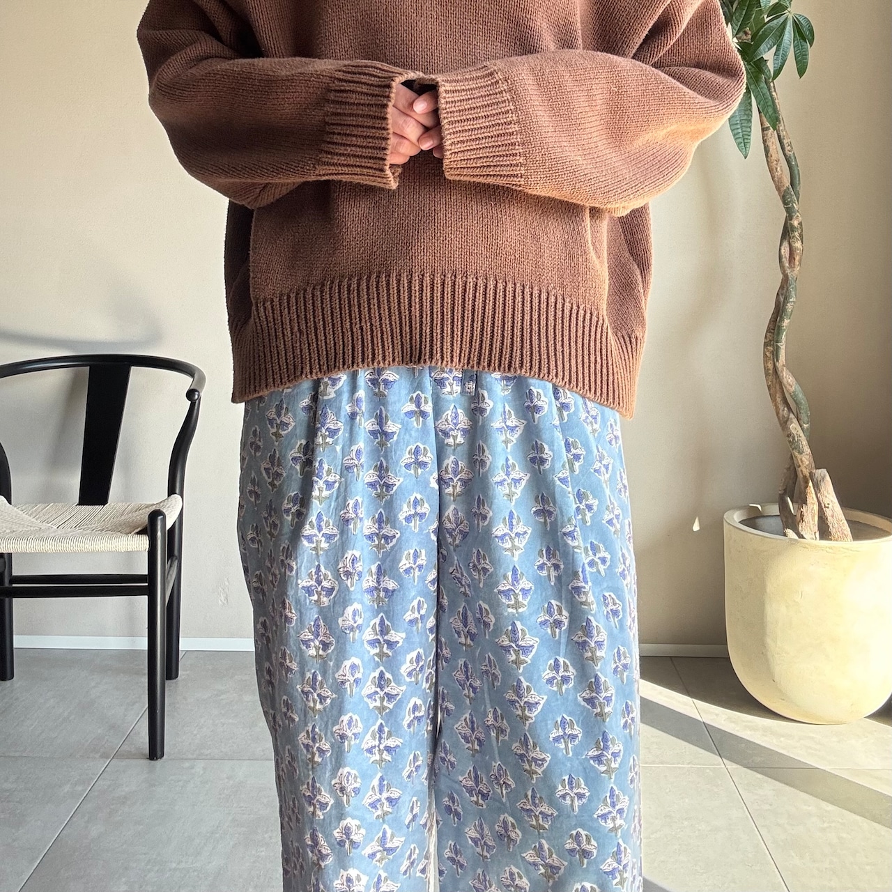 ・同じ柄のアイテムでも、その都度染料を混ぜて色を作りハンドメイドでプリントしているため、多少の色の違いが出る場合がございます。