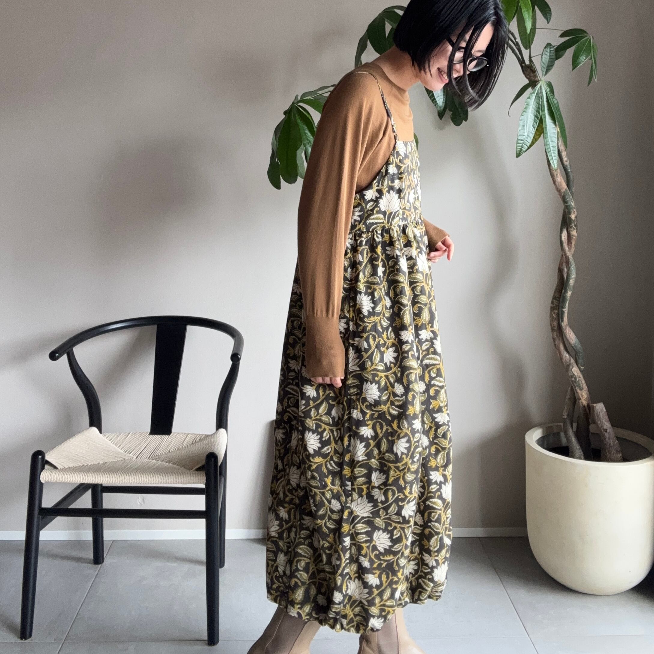 ・同じ柄のワンピースでも、その都度染料を混ぜて色を作りハンドメイドでプリントしているため、多少の色の違いが出る場合がございます。
