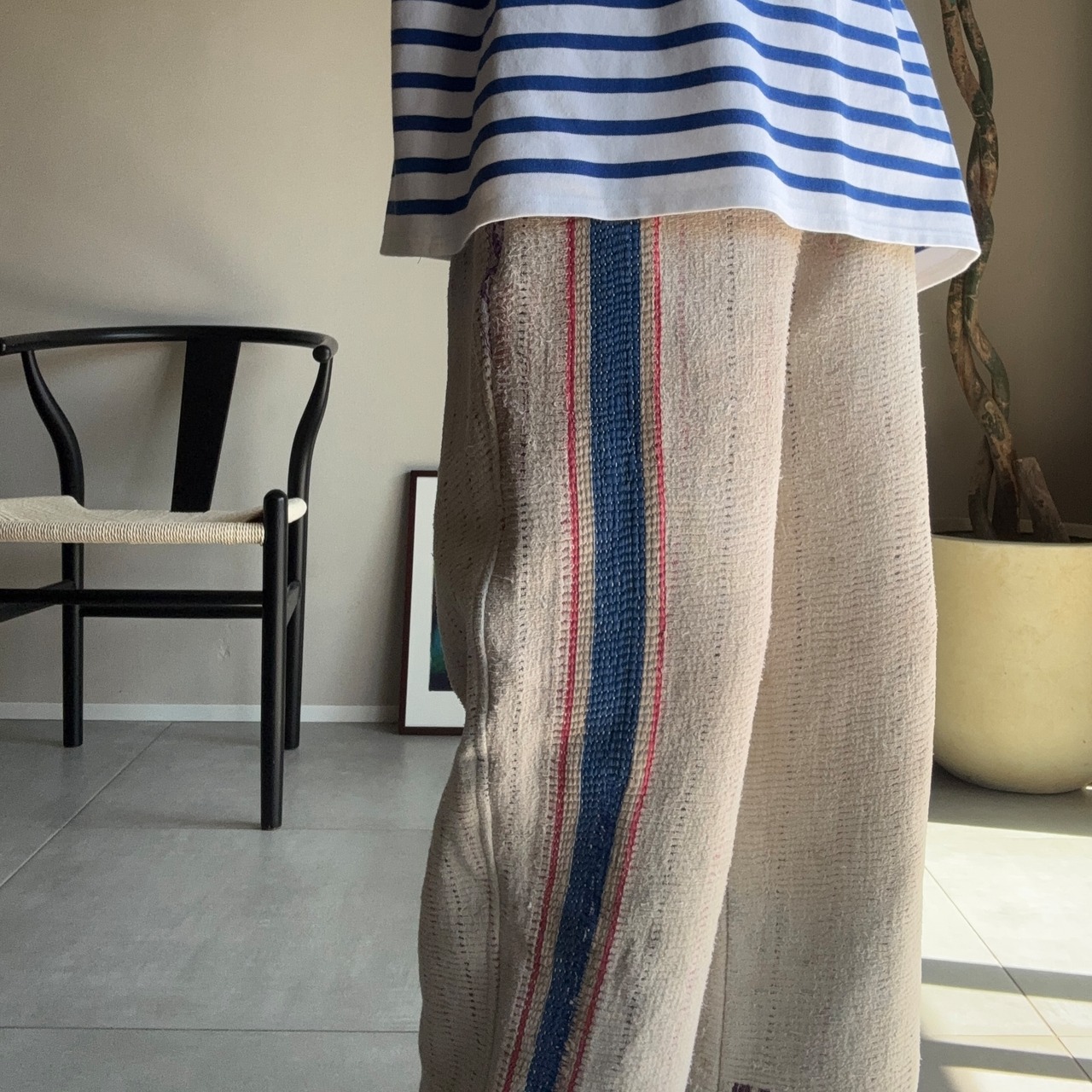 ひと針ひと針手縫いで仕立てられたヴィンテージの布になります。