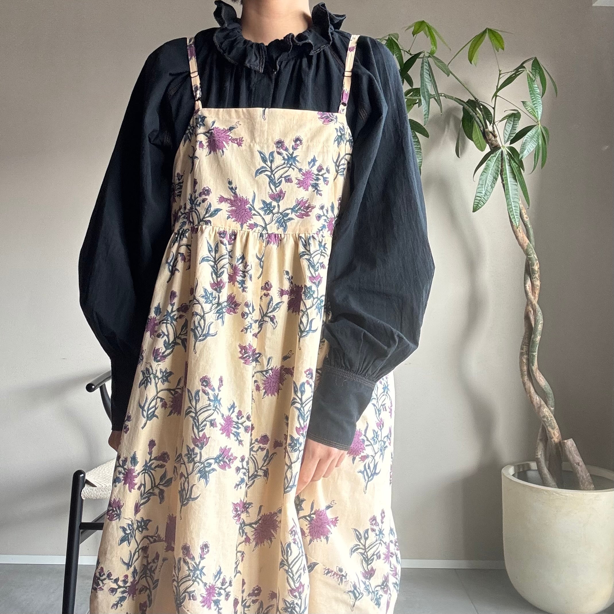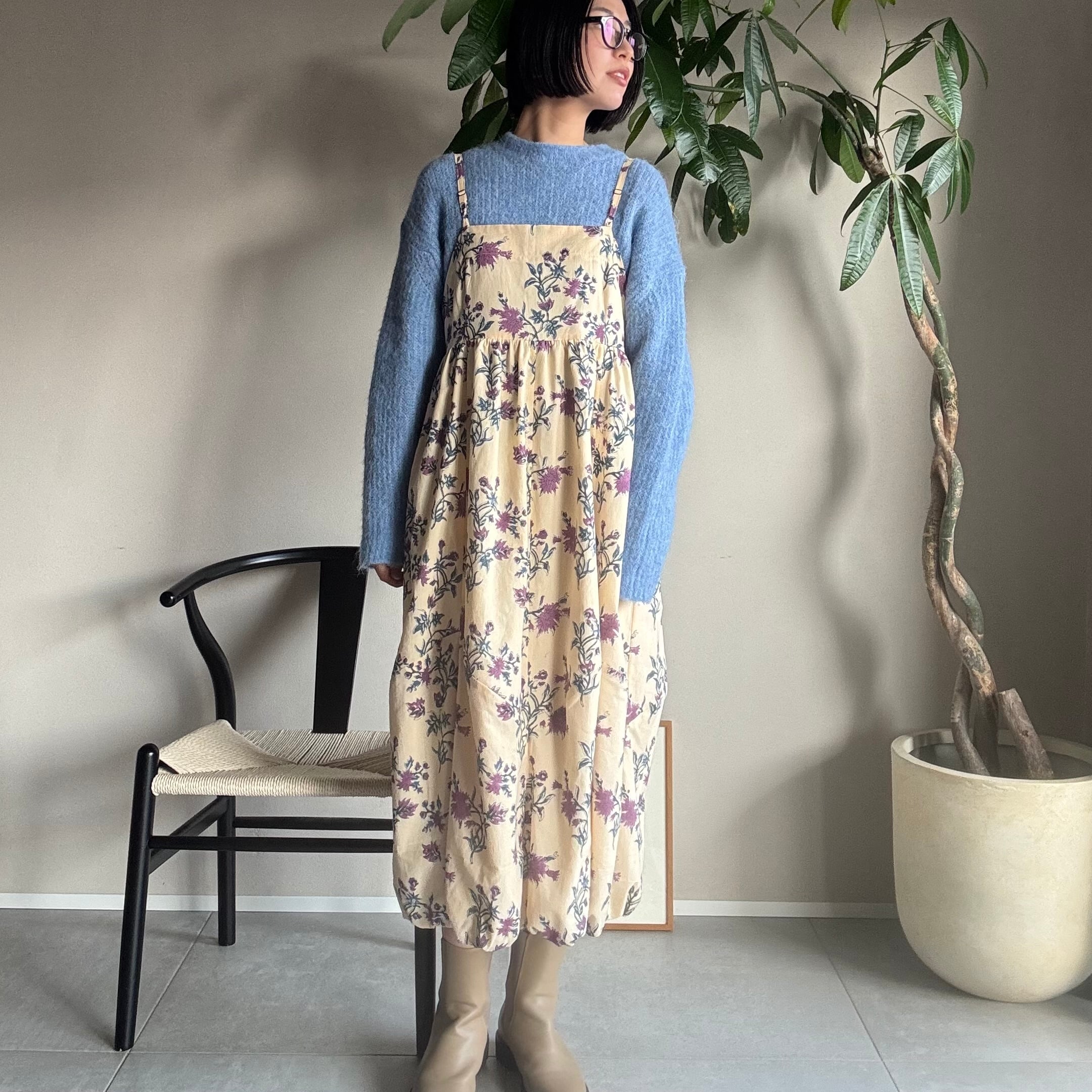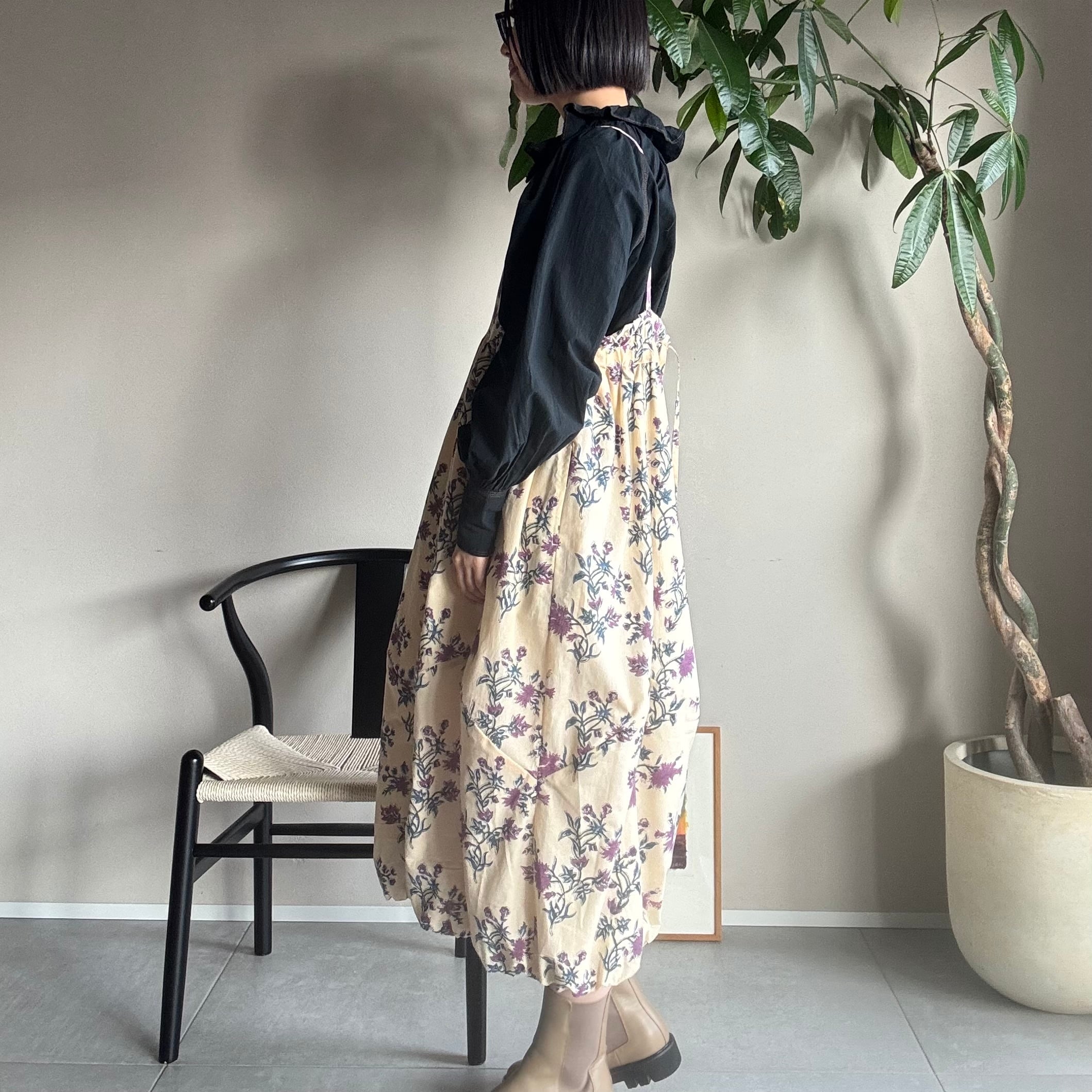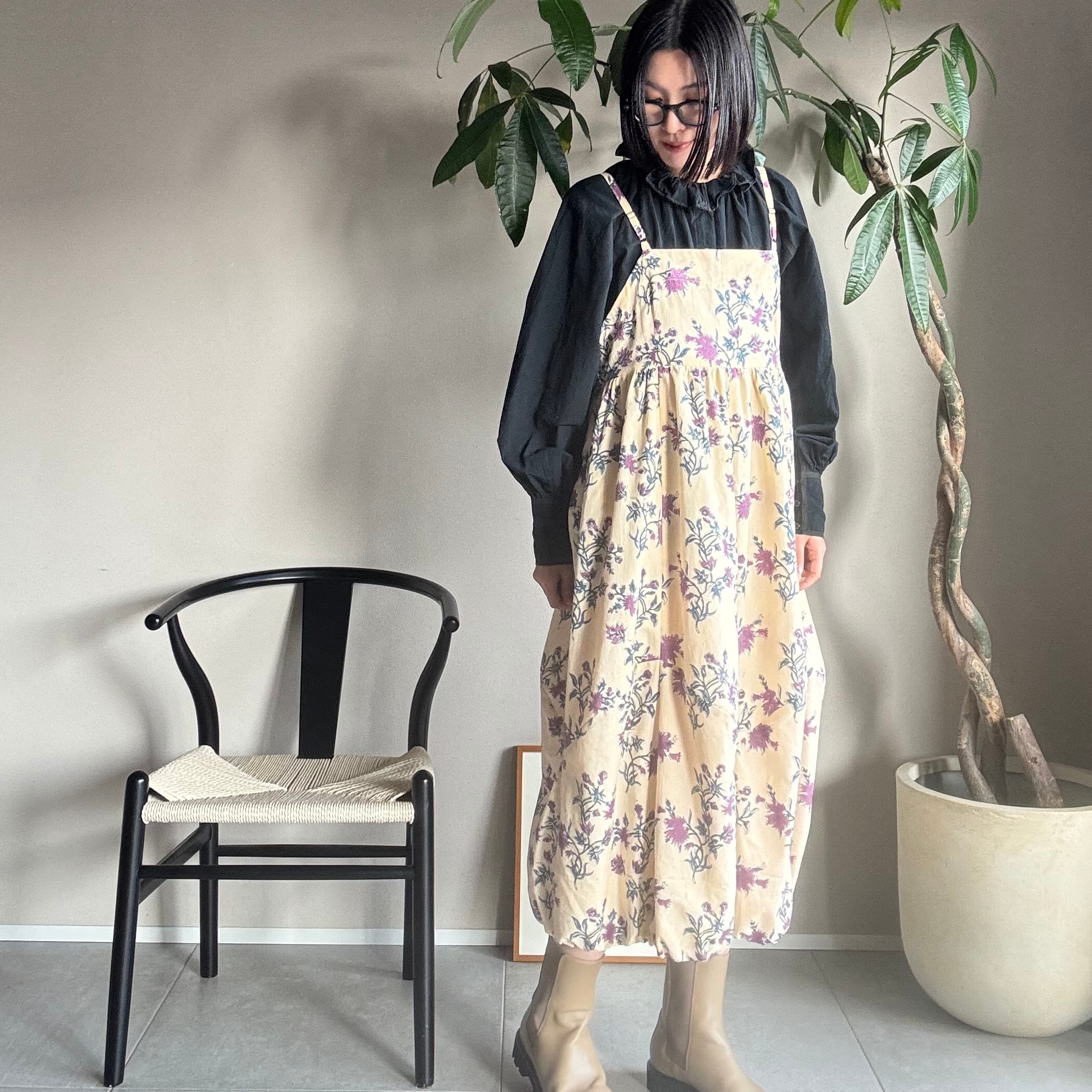 ・同じ柄のワンピースでも、その都度染料を混ぜて色を作りハンドメイドでプリントしているため、多少の色の違いが出る場合がございます。
