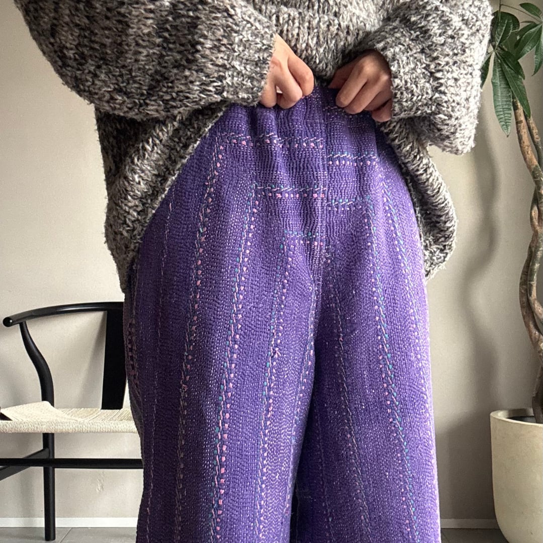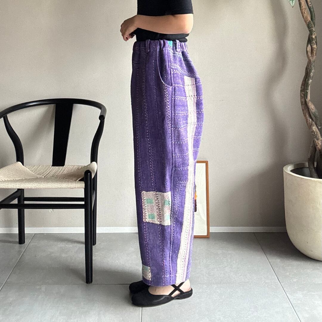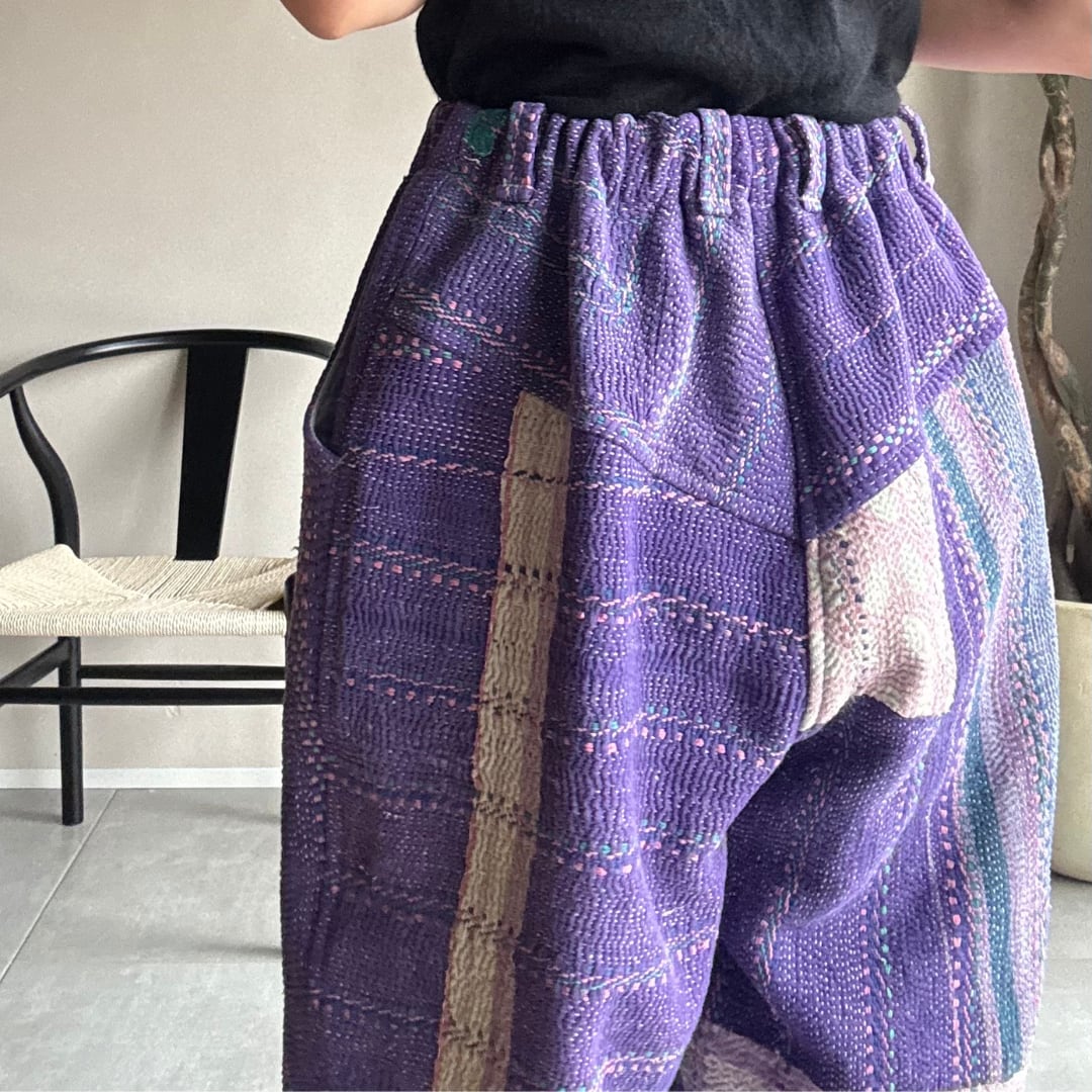 「カンタキルト」を仕立てた一点もののパンツです。