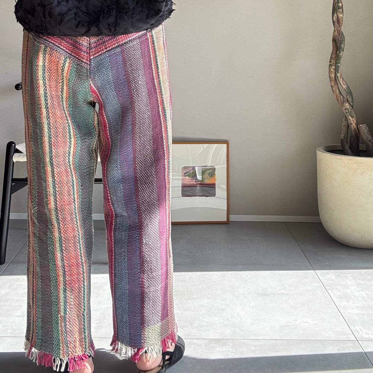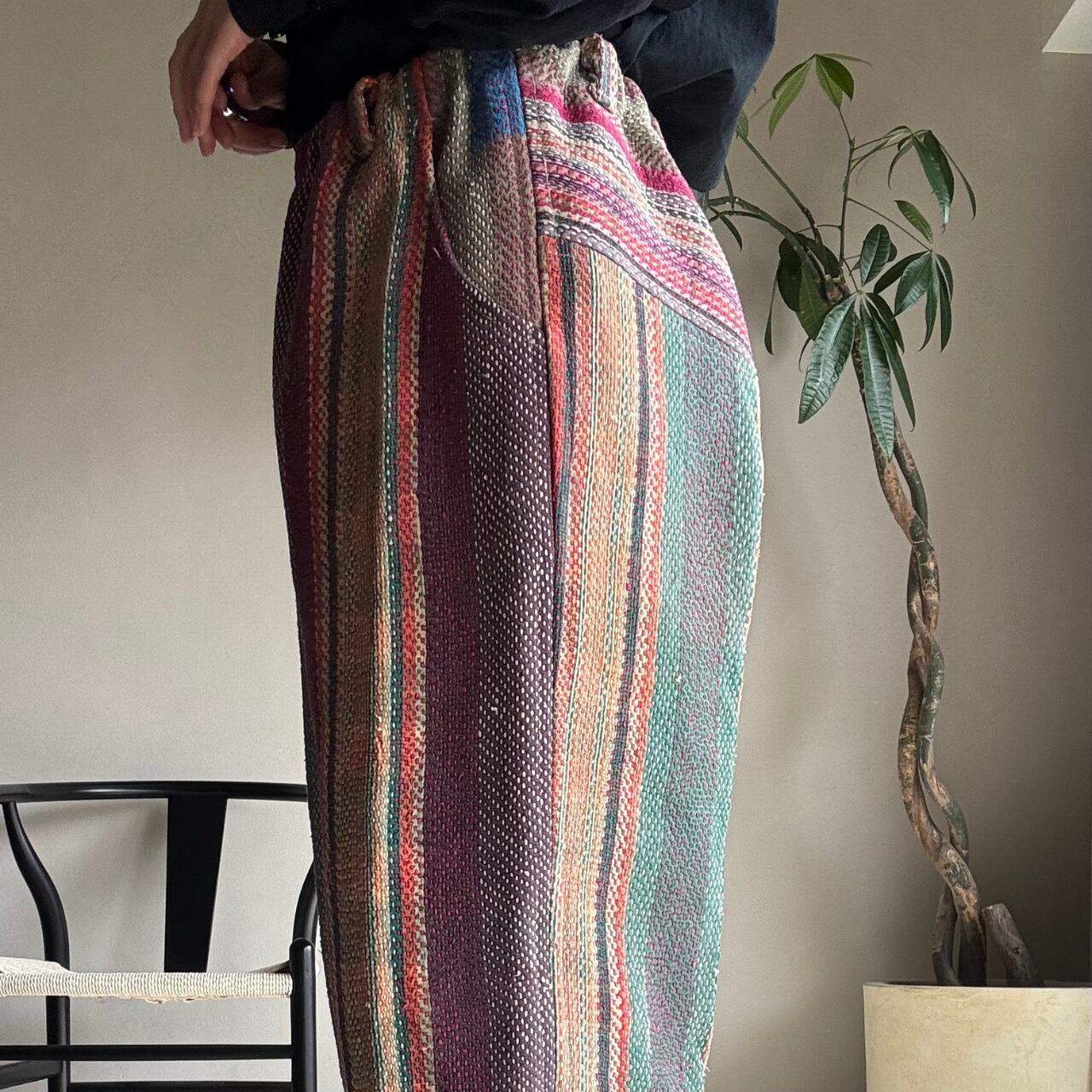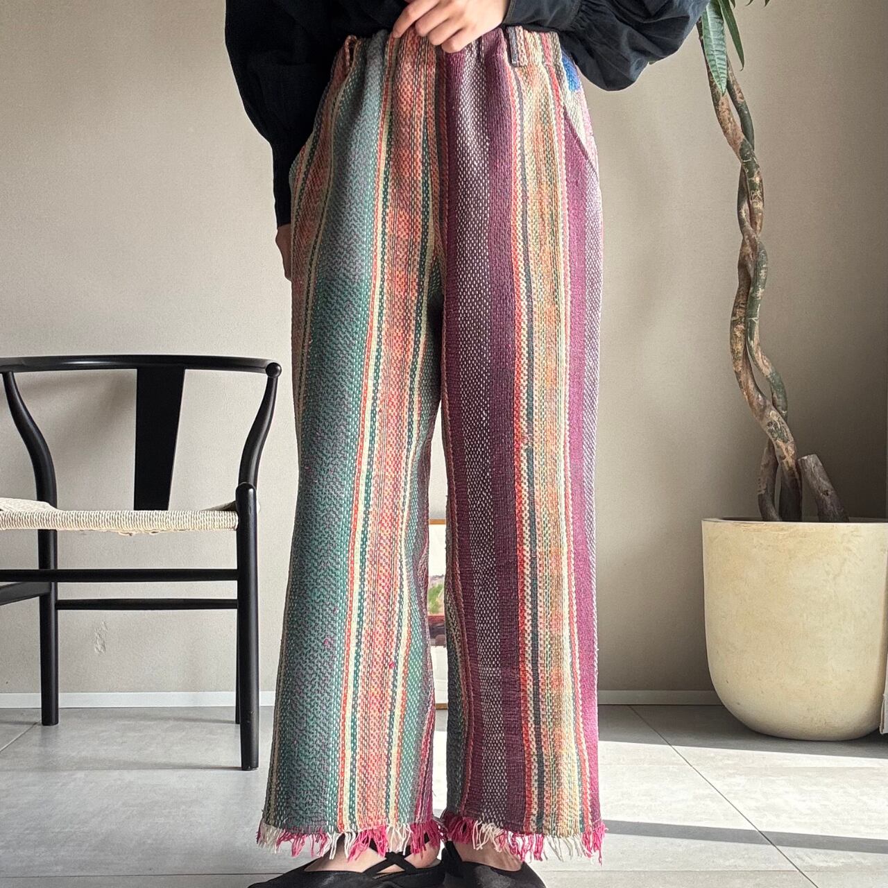 「カンタキルト」を仕立てた一点もののパンツです。