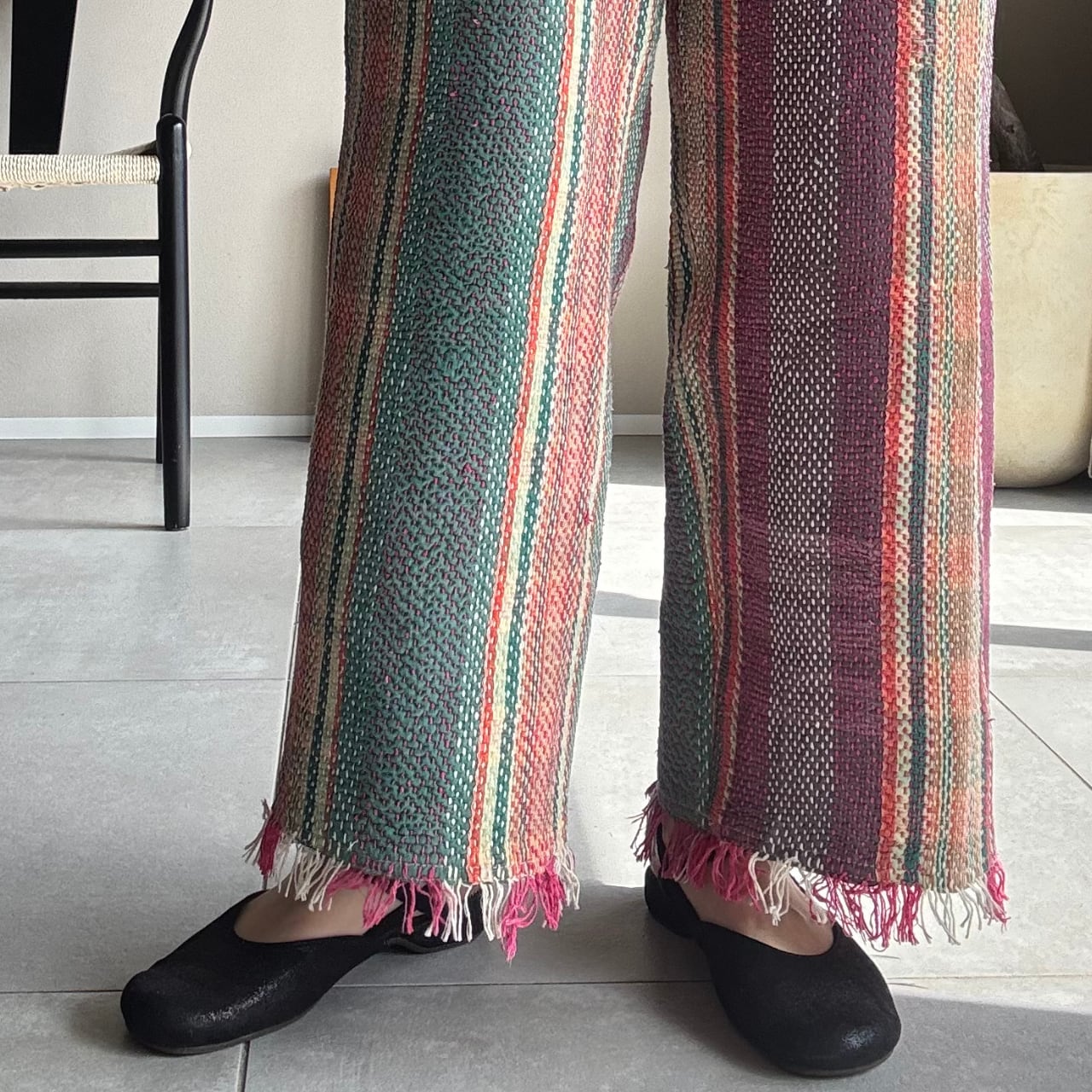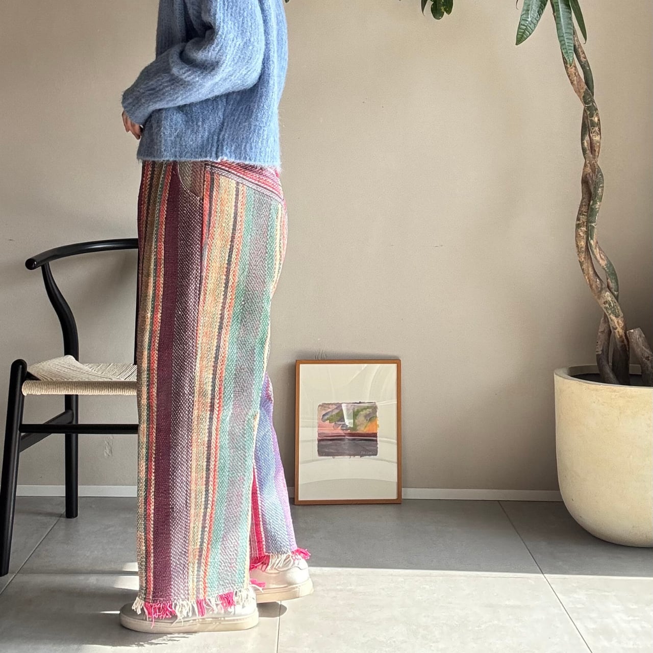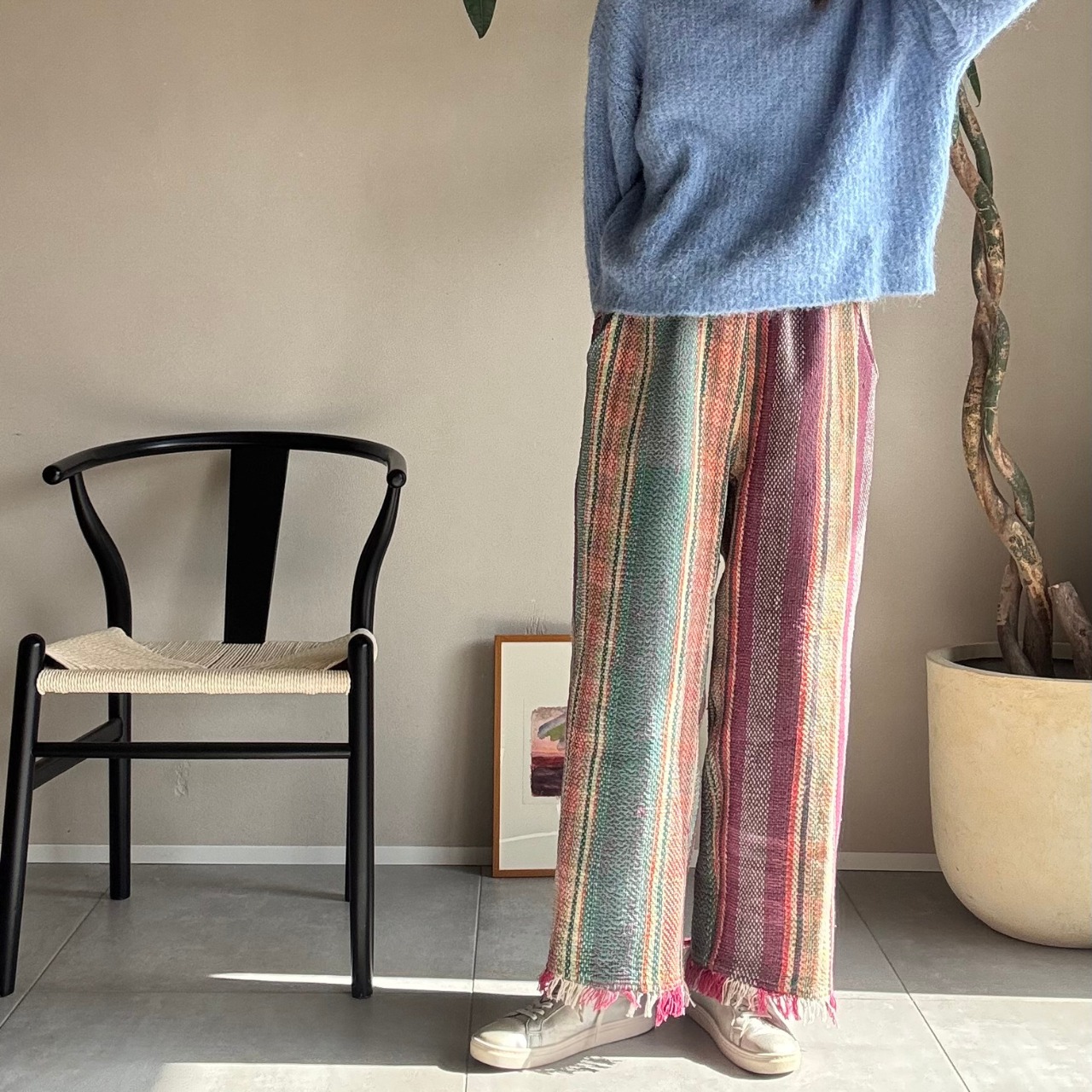 「カンタキルト」を仕立てた一点もののパンツです。