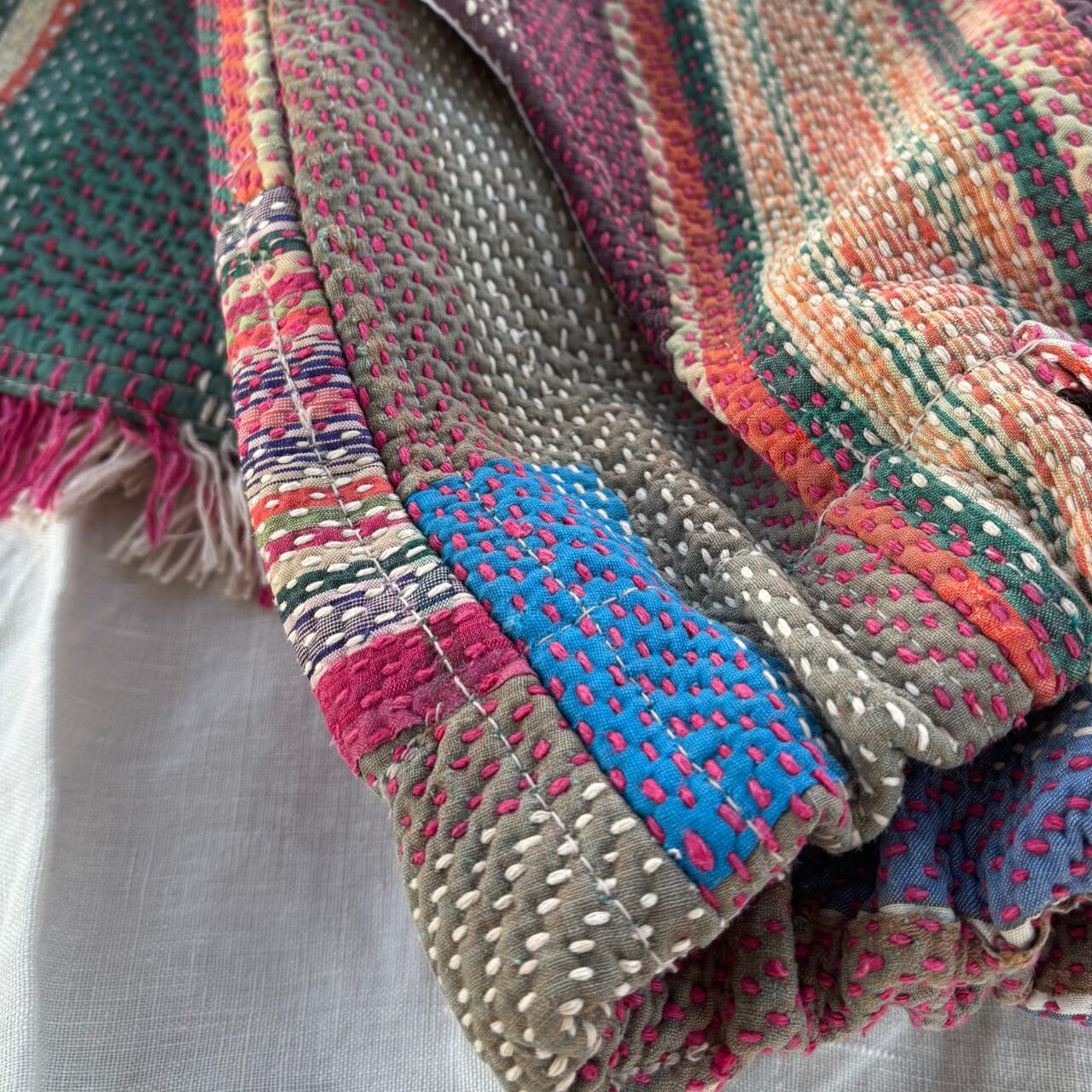 インドの古布、ヴィンテージのカンタキルトを使用し