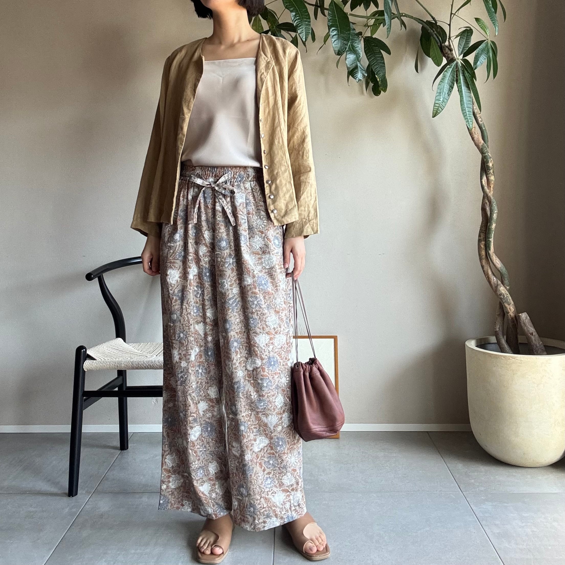 ¦フォグベージュ¦ブロックプリントパンツ