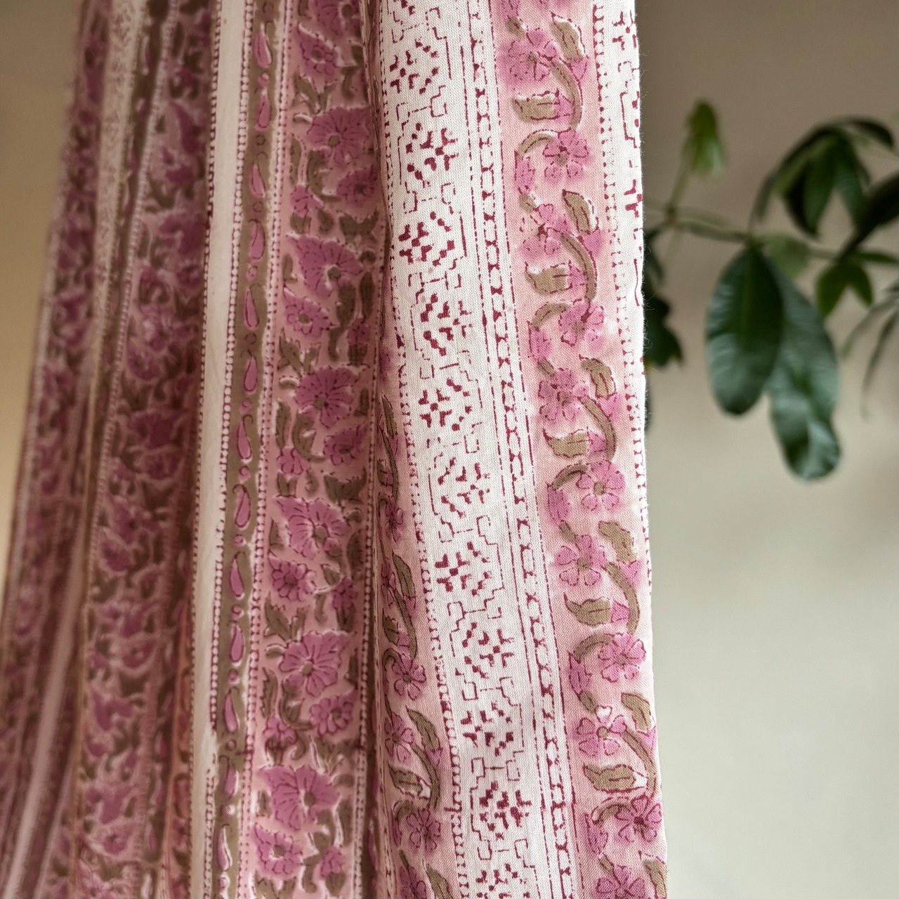 ブロックプリントならではのプリントのズレや濃淡、染料のハネ、などがあります。