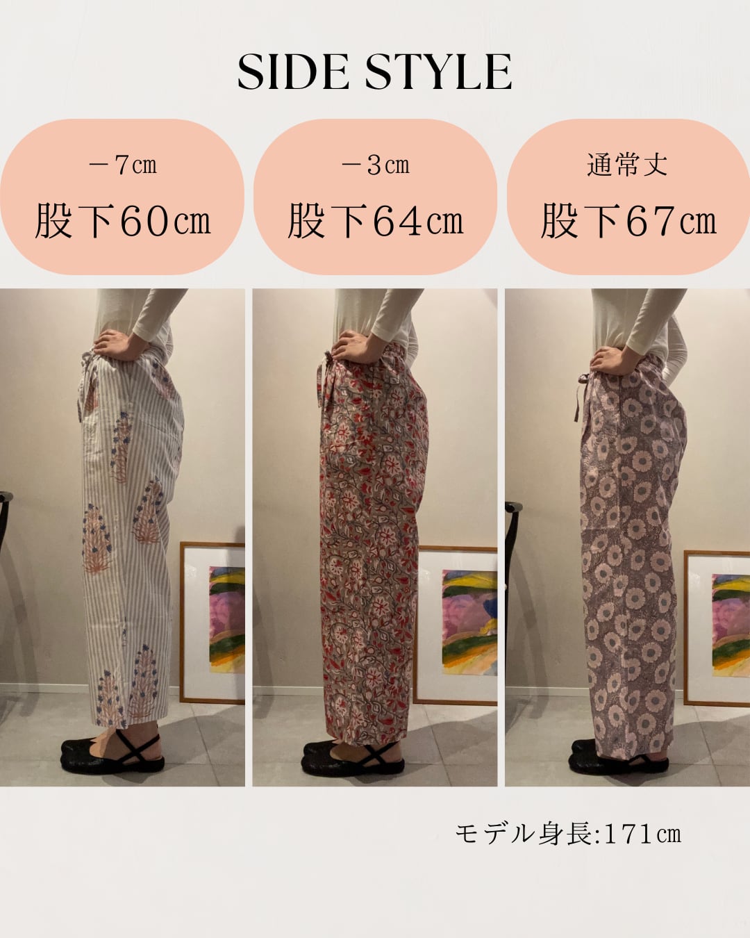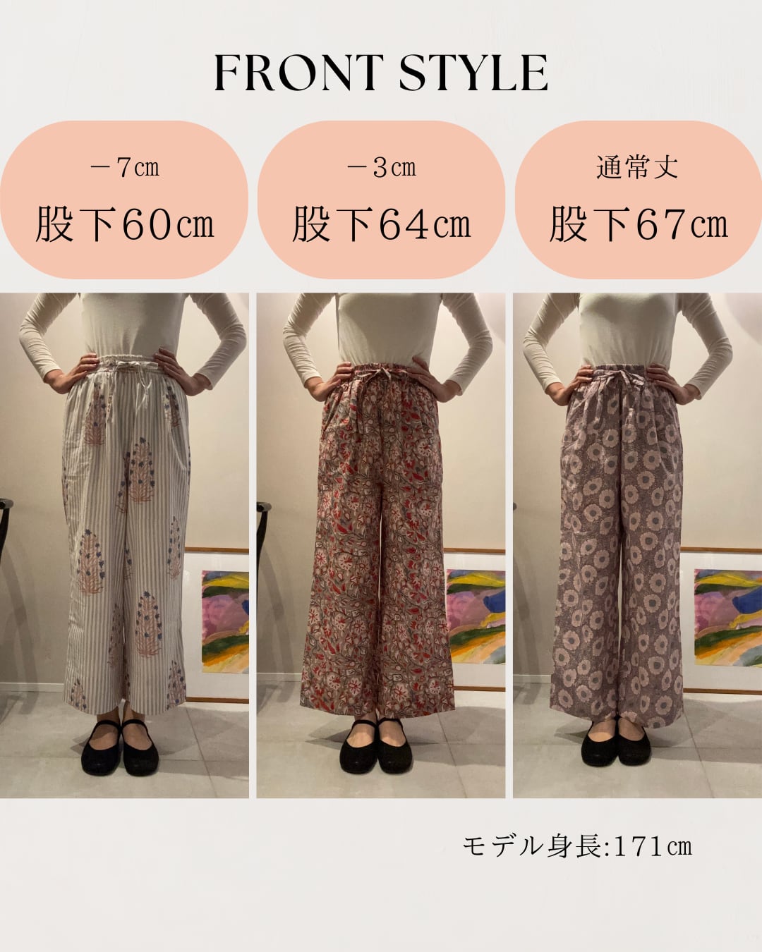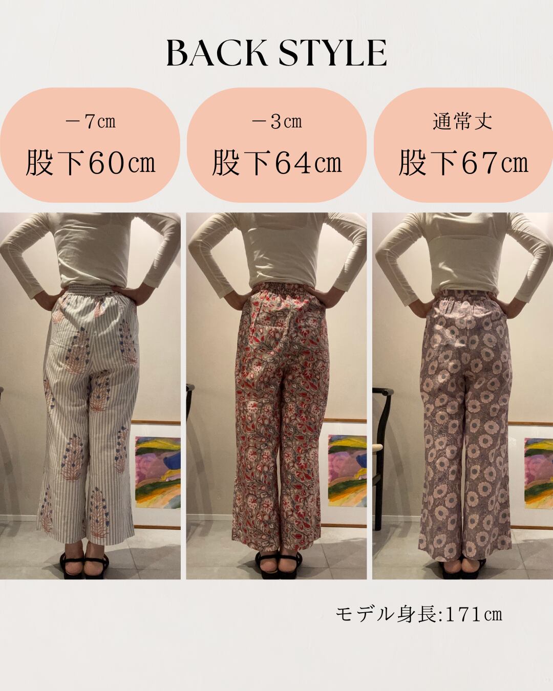 ※股下の長さ以外はすべて同じサイズになります。