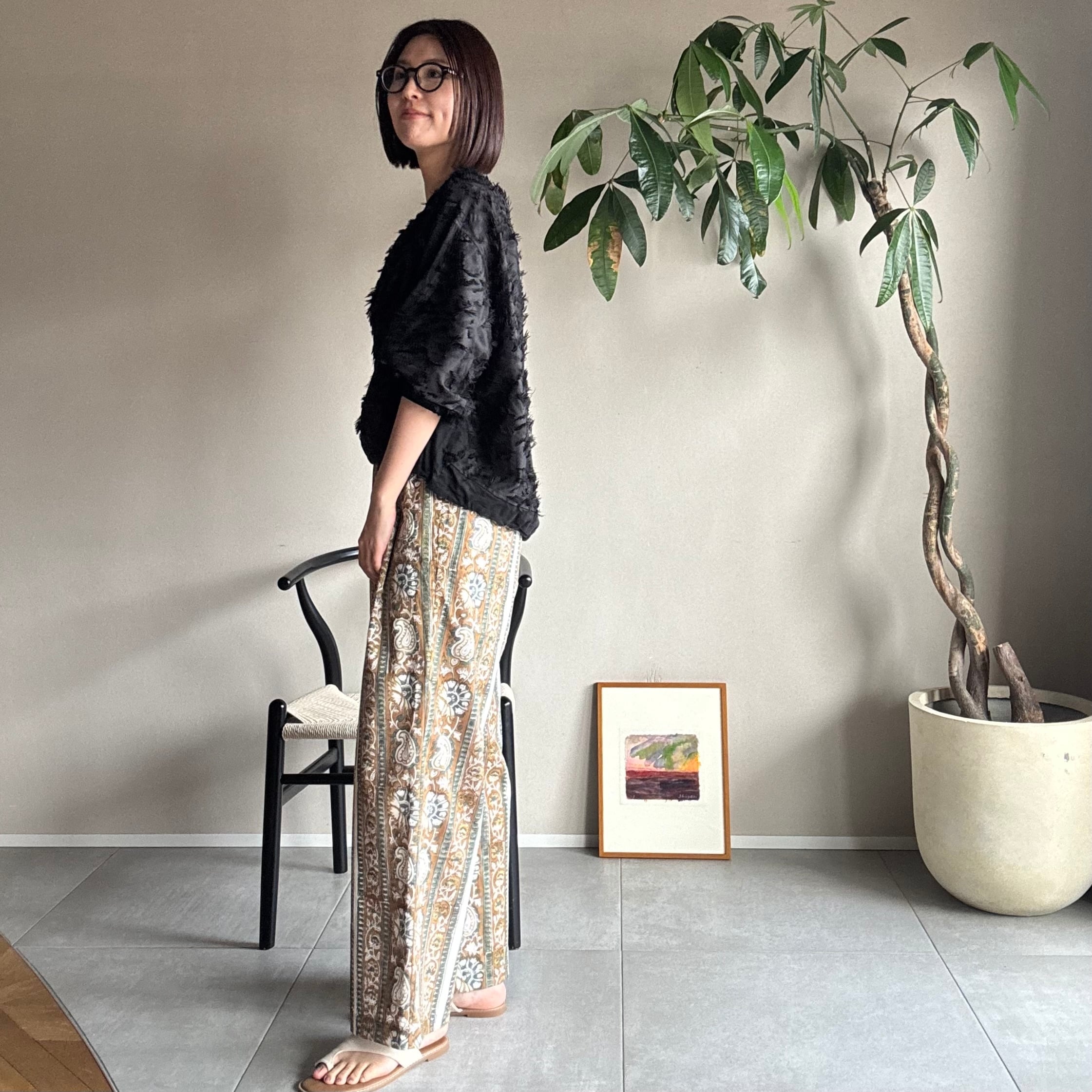 ・同じ柄のアイテムでも、その都度染料を混ぜて色を作りハンドメイドでプリントしているため、多少の色の違いが出る場合がございます。